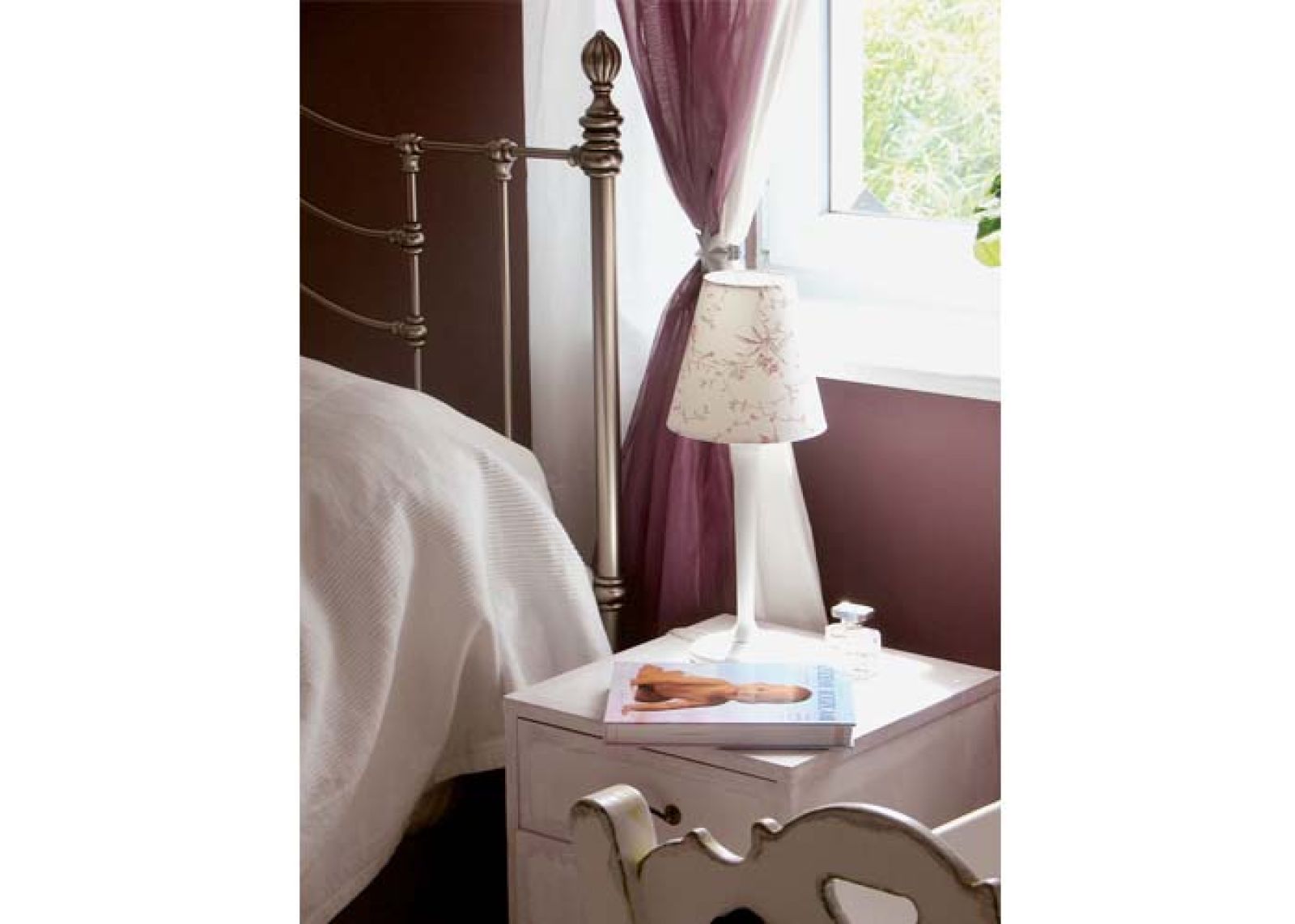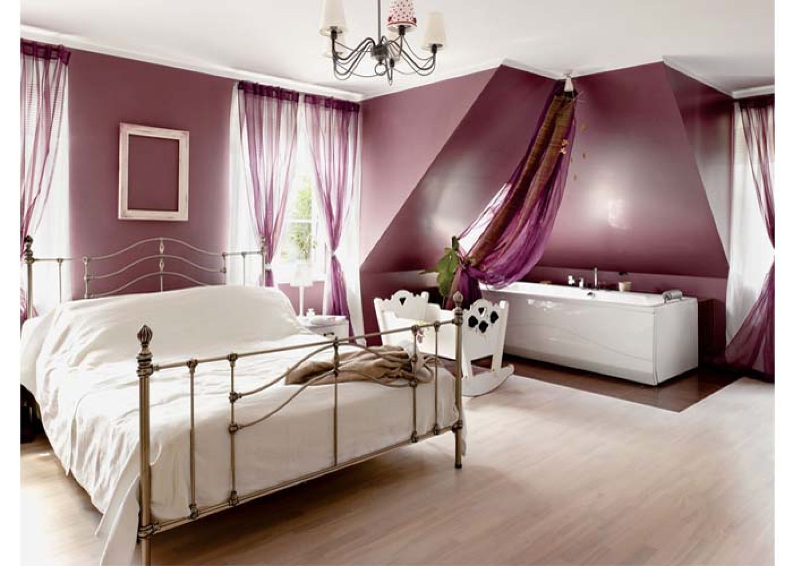 Także wrzosowe ściany to jej dzieło. Podpatrzyła to na jakimś filmie i bardzo się jej spodobało. A że mąż nie miał odwagi przemalować kremowych ścian na tak ciemny i intensywny kolor, pani Beata zrobiła to sama. Gdy wrócił z pracy, połowa sypialni była już pomalowana. Tak na póbę. Okazało się, że z jasną podłogą i białymi meblami nowy kolor sprawdza się doskonale.zasłony,