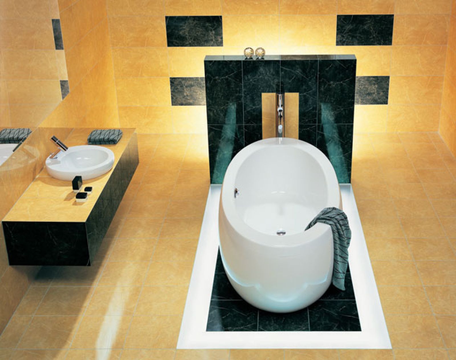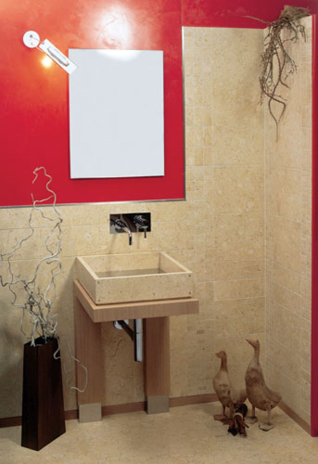 Jednak nie tylko ogień może ogrzać łazienkę. Cuda zdziała kolor, na przykład czerwień – to w końcu najgorętsza z barw, bardzo energetyczna. Dlatego stosuje się ją we wnętrzach, którym trzeba dodać energii, rozświetlić, nadać wyraz. Podobnie pomarańcze i żółcienie. Starochińska filozofia łączy je z wszechmocą i mądrością. Były barwami cesarzy.