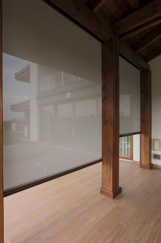 Szeroka gama tkanin o różnej przezierności pozwoli nam dostosować osłony do fasady budynku zarówno pod kątem funkcjonalnym, jak i wizualnym. W systemie rolet Screen Anwis możemy decydować m.in. o stopniu przezierności tkaniny (OF: 0%, 1%, 3%, 4%). Wraz ze wzrostem współczynnika otwarcia (OF) zwiększa się stopień przenikania światła. Roleta o wartości OF 0%, zapewni nam całkowitą prywatność oraz pełne zaciemnienie. To doskonałe rozwiązanie na przykład do sal konferencyjnych i pomieszczeń domowych, w których chcemy zapewnić sobie całkowitą intymność. Tkaniny o większym stopniu przezierności często stosowane są na pergolach czy tarasach. Eliminują refleksy świetlne i zapewniają kameralny charakter osłanianej przestrzeni, przy jednoczesnej widoczności krajobrazów rozpościerających się na zewnątrz.