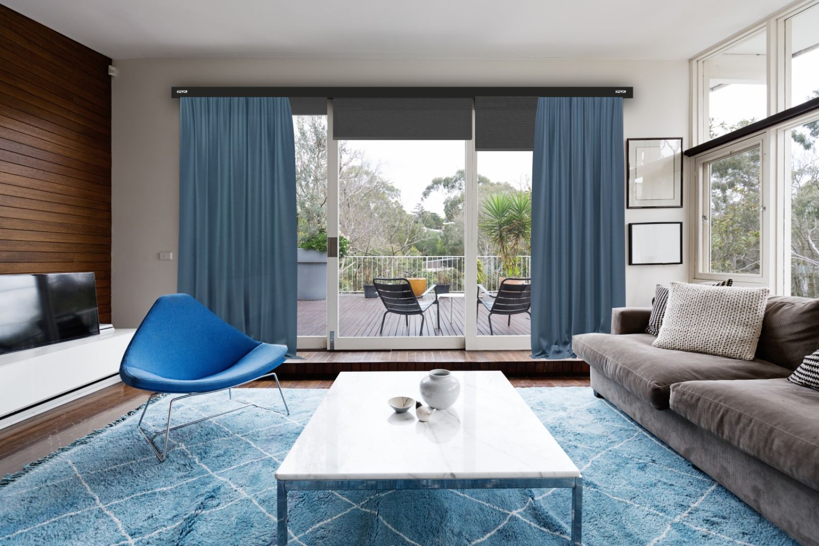 Jeśli Twoje mieszkanie nie należy do najcieplejszych, pomyśl o grubych, mięsistych zasłonach. Welwetowe i wełniane tkaniny ochronią pomieszczenie przed chłodem. To rozwiązanie, choć niebywale efektowne, może nastręczać trudności – warto pomyśleć o automatyce. Marcin Dekor oferuje karnisze zasilane elektrycznie, które wyręczą Cię w przesuwaniu ciężkich zasłon. Karnisze z silnikiem bateryjnym wyposażone są w funkcję miękkiego stopu i startu, dzięki której nawet gruba i masywna tkanina rozsuwa się delikatnie, komfortowo i cicho. Welwet w głębokich odcieniach burgundu i butelkowej zieleni oraz wełniane szarości dopełnione metalowymi zdobieniami w kolorze złota widuje się dzisiaj w najbardziej wyszukanych wnętrzach. Możesz zagoszczą też u Ciebie?