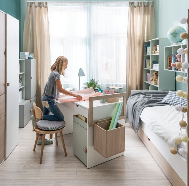MUVE to odpowiedź marki VOX na potrzeby nastolatków i młodszych dzieci w kreowaniu własnej przestrzeni. Możliwości personalizacji, drewniane wykończenia, naturalna kolorystyka, a przede wszystkim funkcjonalność i mobilność, to cechy wyróżniające tę nową kolekcję.