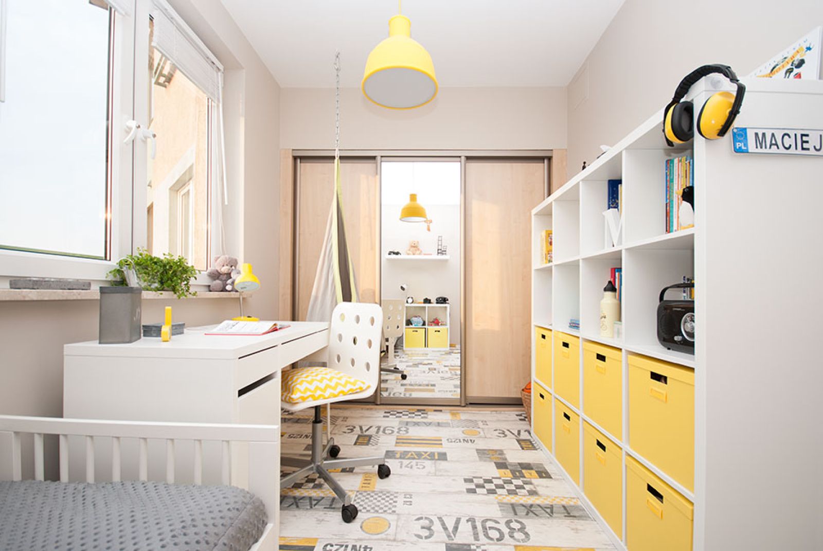 Przede wszystkim jednak to podłoga jest najważniejszym terenem działania i każdy jej wolny metr będzie dla dziecka na wagę złota. Warto o tym pamiętać i nie „zagracić” tej przestrzeni dodatkowymi, a niekoniecznie potrzebnymi szafkami, półkami, komodami, kwiatkami w doniczkach. Zamiast tego pomyślcie o wygodnej, kolorowej pufie, np. dopasowującej się do pozycji siedzenie dziecka – będzie idealna do odpoczynku lub czytania książek (polecamy markę Miuki), podwieszanej na suficie huśtawce lub hamaku, odpowiednim stoliku, przy którym wasze dziecko będzie mogło rysować lub eksperymentować, a przede wszystkim o wielofunkcyjnych skrzyniach czy pudłach, w których po zabawie wylądują wszystkie zabawki (np. Woodenstory).
