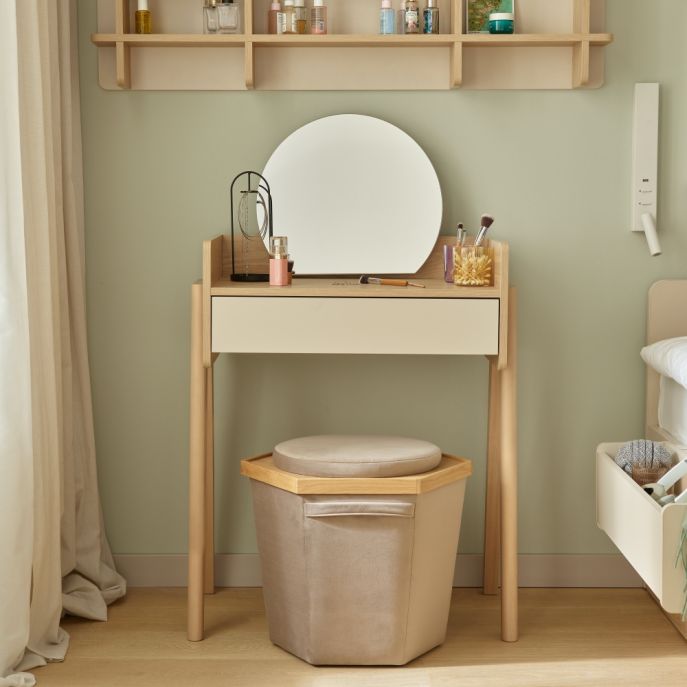 W kolekcji MUVE zastosowano przemyślane rozwiązania projektowe, takie jak elegancka toaletka z ruchomym, podświetlanym lustrem, łóżko z podnoszonym stelażem na materac, wysuwany dolny materac do okazjonalnego spania dla gościa, szuflady na pościel, szafka – skrzynka przy łóżku na najpotrzebniejsze rzeczy czy wieszak na plecak oraz bryły, które zapewnią funkcjonalne przechowywanie np. szafy (w dwóch rozmiarach), kilka wariantów regałów, półek wiszących, komodę.