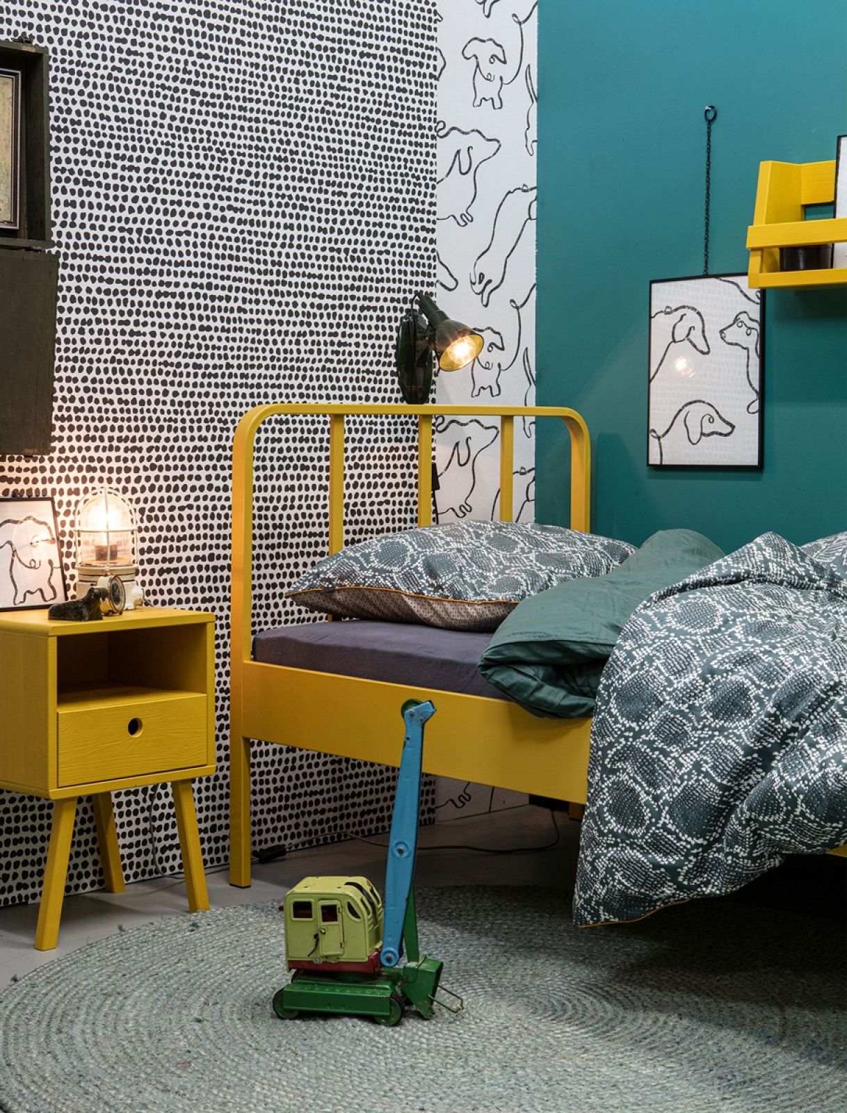 Energetyczne barwy jak najbardziej, ale nie na wszystkich ścianach. Spróbuj zaproponować neutralne, ale ciekawe tło – np. ściany z betonu architektonicznego w odcieniu uniwersalnej szarości. Jeśli Twoja pociecha lubi industrialne klimaty sprawdzi się w stu procentach. Wystarczy powiesić na nich plakaty w stylistyce vintage oprawione w proste ramy i będzie szałowo! Bardziej romantycznym duszom spodoba się kolorystyka ścian w pastelowych odcieniach. Na ich tle możecie zakomponować galerię zdjęć z rodzinnego archiwum albo powiesić modne dekoracje ścienne.