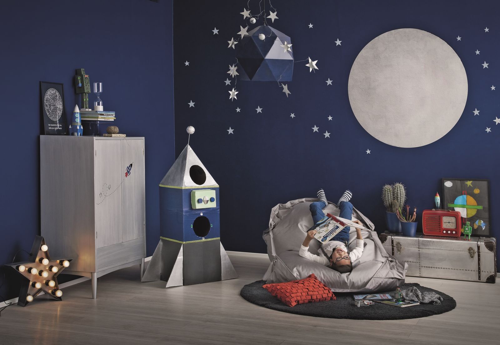 Panuje tu atmosfera sportowych osiągnięć, zdobywania kosmosu i pokonywania przestrzeni w niezwykłych, szybkich pojazdach. Chłopięcy pokój jest wyzwaniem dla rodzica – powinien być zaprojektowany tak, by dziecko mogło w nim ukryć się przed wrogiem, wspiąć po konarze, linie lub ścianie albo zaplanować podróż przez kontynenty. Definicją tego miejsca jest coś pośredniego między jaskinią, schronem i wigwamem. Tutaj rządzi wyobraźnia.