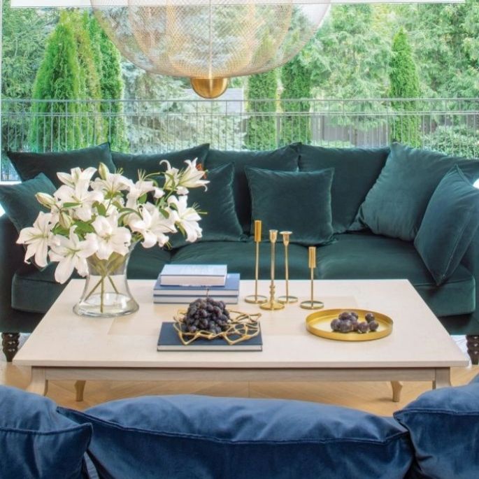 Lubisz styl glamour? Wybierz stoliki kawowe ze złotymi elementami lub połyskujące dodatki, które dodadzą wnętrzom błysku. Stawiasz na salon w stylu minimalistycznym? Nie kupuj poduszek. Zainwestuj za to w dizajnerski fotel albo stolik kawowy – niech będzie ozdobą wnętrza, zaskakuje kształtem i funkcjonalnością. Lubisz wnętrza retro? Ustaw sofę i fotele w pewnej odległości od siebie – najlepiej niech dzieli je dywan. Oczywiście pasujący do epoki. A jeśli marzy ci się aranżacja wnętrza w stylu skandynawskim, zobacz: Salon w stylu skandynawskim – 10 najpiękniejszych aranżacji wnętrz.