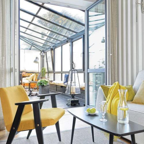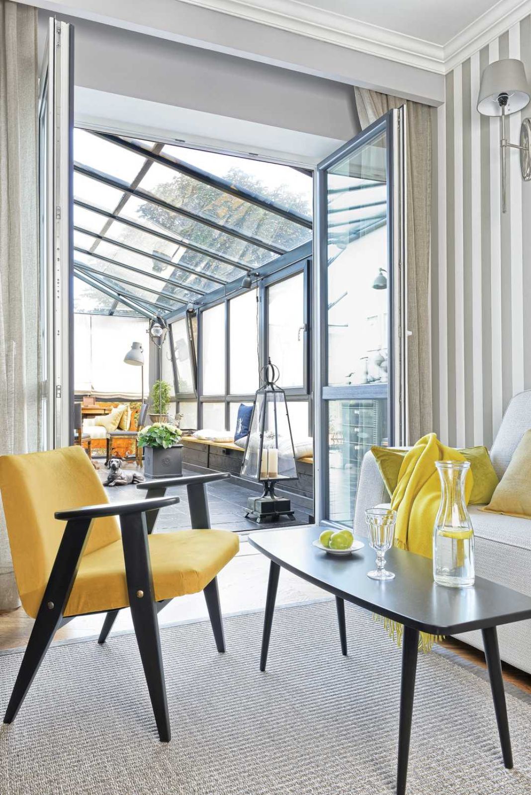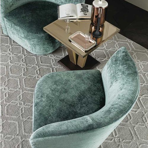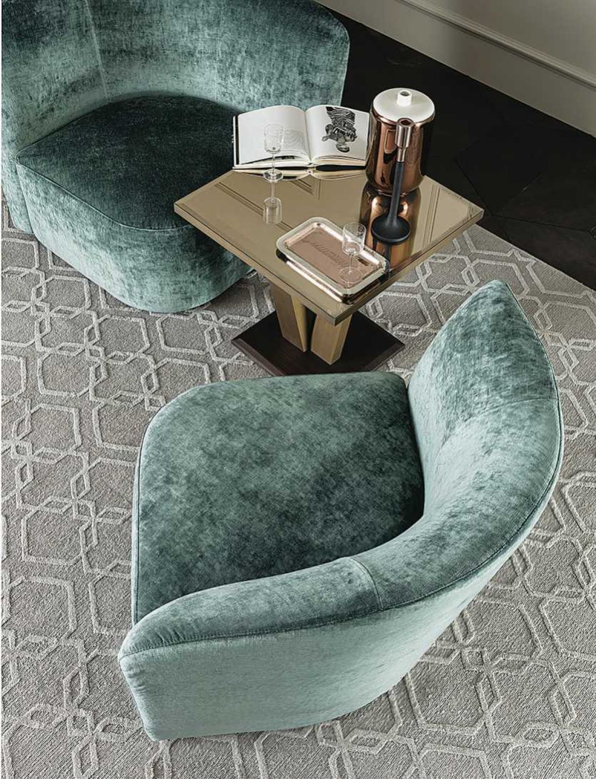 Fotele wzorowane na tych z lat 60. i 70. są zgrabne, filigranowe i często mają odważne kształty – dlatego nie zawsze pasują im wzory. Anna Koszela radzi, by obijać je szlachetnymi tkaninami w jednym kolorze i zestawiać w grupy – po trzy, cztery. Jeśli postawimy je obok stolika kawowego w stylu vintage, powstanie oryginalny kącik klubowy.