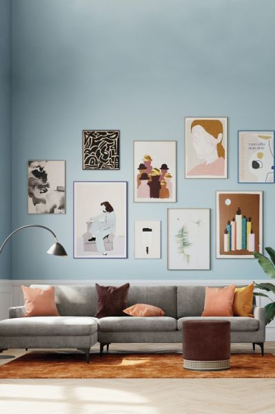 Ściana za kanapą to dobre miejsce dla obrazów i dekoracji ściennych. Można też położyć na niej ozdobną tapetę, powiesić zegar, półki, kwietniki albo pomalować ją kolorową farbą. Zobacz 10 pomysłów na ścianę za kanapą!