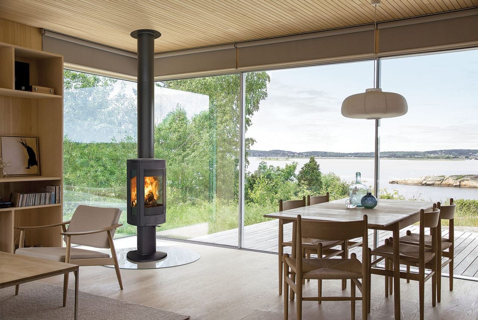 Jeśli ktoś nie wyobraża sobie domu bez żywego ognia, ma niezłe pole do popisu, bo dizajnerzy prześcigają się w pomysłach. Wystarczy popatrzeć na kozę marki Jøtul, która nie dość, że ma duże szyby z trzech stron, to jeszcze może się obracać o 360 stopni. Stawiamy ją na eleganckiej nodze albo betonowym cokole, a jeżeli planujemy przeprowadzkę, zabieramy ze sobą jak mebel. Ciekawą propozycją jest piec kaflowy, ale nie taki jak w saloniku babci. Ma kafle w kolorze burgunda, a do kompletu nowoczesny stalowy cokół z okrągłymi drzwiczkami. Jeszcze lepsze są kominki, które przy okazji dzielą przestrzeń. Stawiamy je jak ściankę, na przykład między salonem i jadalnią, i podziwiamy płonący ogień z obu stron.
