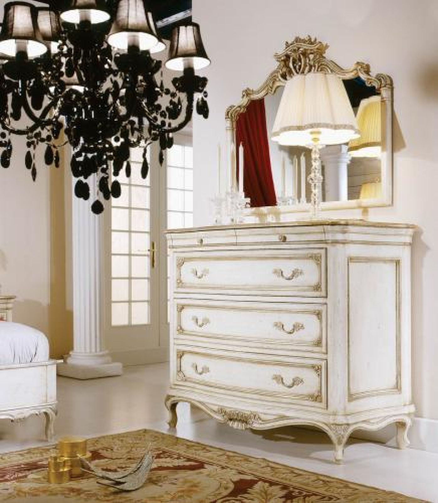 No i te nieszczęsne, mało estetyczne grzejniki – koniecznie trzeba je elegancko zabudować. Pamiętajmy, że jeśli pomieszczenie jest duże, do woli możemy szaleć z solidnymi intarsjowanymi komodami, stołami na bogato rzeźbionych nogach i pozłacanymi kutymi łóżkami. Ale jeśli jesteśmy ograniczeni przestrzenią, lepiej wybrać meble skromniejsze – subtelne owalne stoliki (w stylu rokoko), wąskie przeszklone witryny. Teraz potrzeba jeszcze trochę dodatków: pod sufitem kandelabry, w oknach – mniej lub bardziej obfite draperie z frędzlami, lambrekiny i festony, na kominku i komodach postawmy zegary.