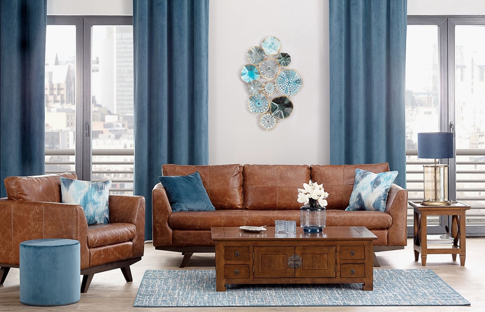 Może być bardziej odważnie lub z rezerwą. Ostre żółcienie i ciepłe brązy powracają wraz z modą na obicia w naturalnej skórze. Nieważne, którą z tych opcji wybierzemy, bo obie sofy dobrze wyglądają na kontrastowym chłodnym tle – granatowym, grafitowym czy błękitnym.
