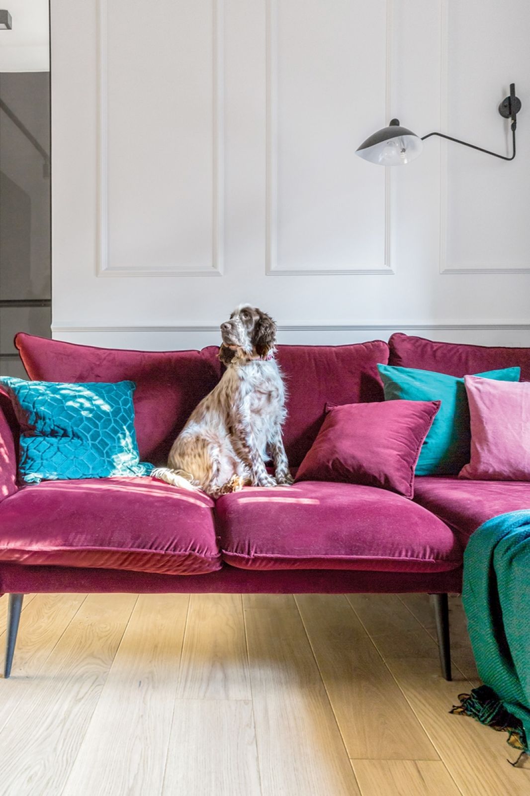 Szmaragd z fuksją, butelkowa zieleń z wrzosem to ciekawe, wyrafinowane zestawienia. Ale żeby zagrały, muszą mieć neutralne, najlepiej jasne albo przynajmniej jednolite tło. Te kolory aż proszą się o miękkość, dlatego wybierane są na aksamitne czy welurowe tapicerki. Nie ma lepszej opcji na jesień niż zatopienie się w takim otulającym meblu.
