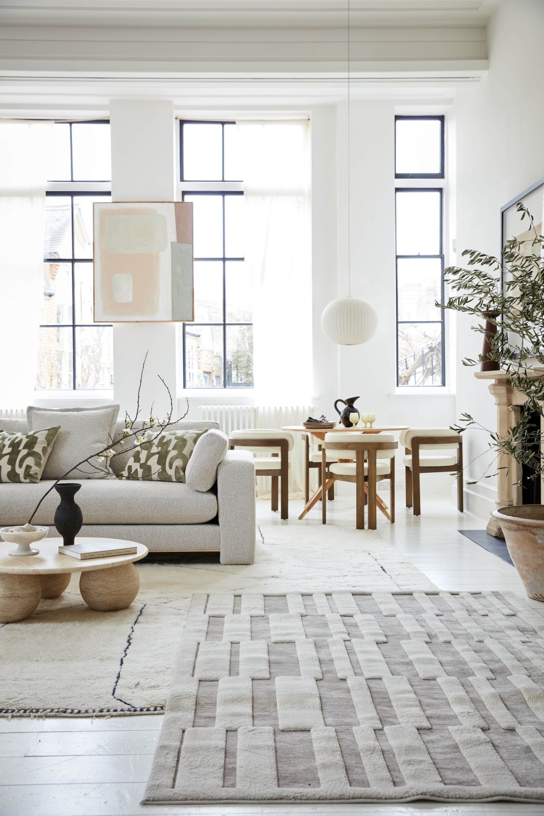 Brutalistyczne akcenty – łagodność kontrastuje w modnym salonie z ręcznie robionymi, brutalistycznymi formami sprawiającymi wrażenie tępo ciosanych, jakby niewykończonych.