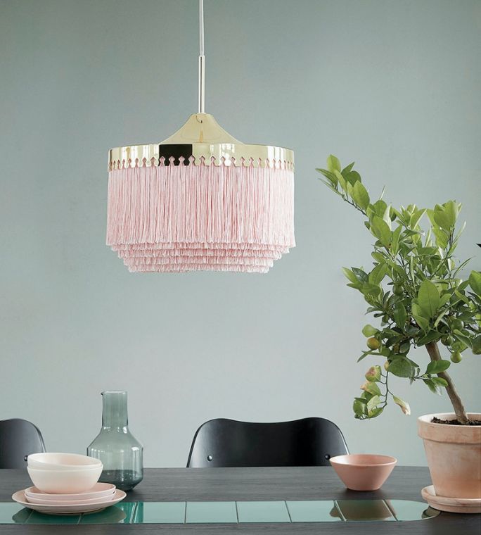 Ta elegancka lampa wisząca oczaruje swoim wdzięcznym wyglądem każdego, kto wejdzie do salonu. Delikatnie przepuszcza światło przez klosz z luźno wiszących tekstylnych sznurków i tworzy przytulny nastrój. Idealny pasuje do luksusowego apartamentu, ale równie ciekawie można zaaranżować ją w nowoczesnych mieszkaniach, którym doda ciepła oraz zmysłowości. Pasmanteryjne dodatki już od kilku sezonów świętują swój wielki powrót dodając wnętrzom wysmakowanego klimatu retro.