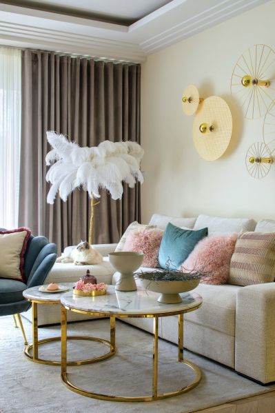 Sztukaterie to kolejny pomysł na ścianę za kanapą. To dekoracje ścienne, które świetnie pasują do klasycznych wnętrz. Są bardzo eleganckie i nadają szyku każdej aranżacji. Salonowi, w którym się pojawią, nic więcej nie trzeba. Jeśli kanapa podsunięta jest pod samą ścianę, po obu stronach sofy przydadzą się kinkiety. W „ramach” ze sztukaterii można też powiesić nieduży obraz.