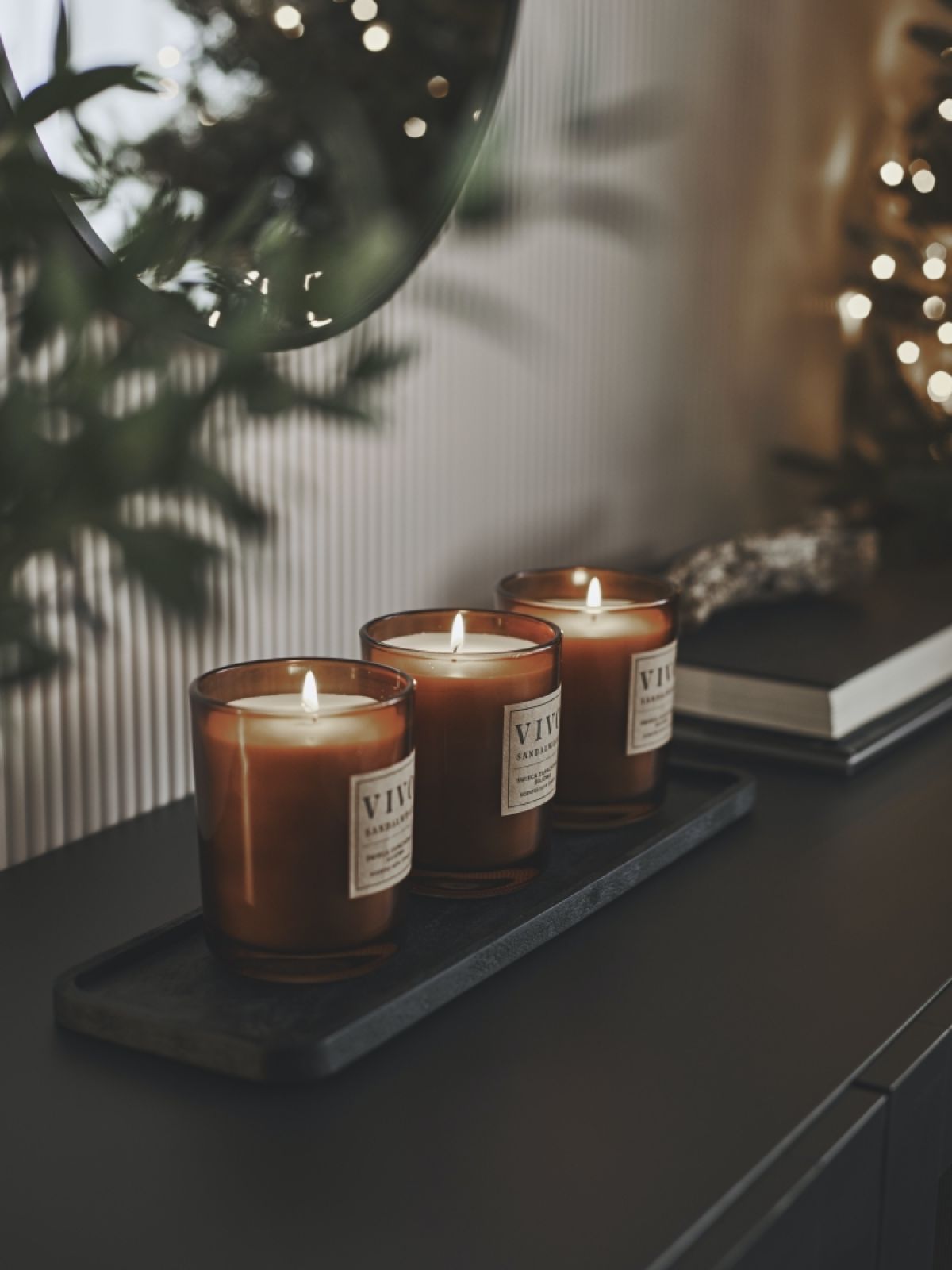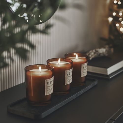 Jeśli masz prawdziwy, z paleniskiem, w którym rozpalasz ogień, jesteś szczęściarzem. Nic tak nie ociepla atmosfery i nie tworzy wyjątkowego nastroju jak płomienie rozpalone po zmroku. Podobny efekt uzyskasz zapalając świece. Możesz ustawić je wewnątrz kominkowej obudowy (często prawdziwy kominek zastępuje się atrapą stawiając dekoracyjny portal przy ścianie) albo na gzymsiku. Najpiękniej będą prezentować się w lampionach.