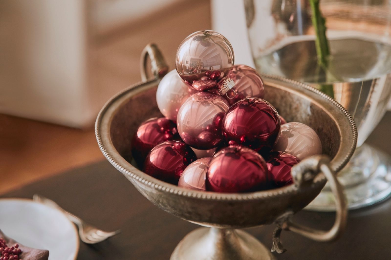 Pojedynczymi bombkami możesz ozdobić wigilijny stół – przeplataj nimi nakrycia, połóż na talerzu, wepnij w stroik z gałązek albo zrób z nich zawieszki na krzesła gości. Dekoracje, które ci zostały, sprawdzą się na wiele sposobów, wystarczy puścić wodze fantazji. Świąteczne aranżacje mogą być naprawdę pomysłowe, nawet te najprostsze!