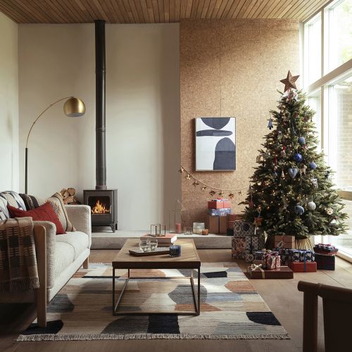 Jeśli zapewnisz choince wodę w stojaku będziesz mógł się nią długo cieszyć. Jeśli niedaleko jest sofa narzuć na mebel wypoczynkowy poduchy w poszewkach z motywem zimy, przyda się też mięciutki pled i taca z gorącym kakao. Ścianę nad sofą warto ozdobić wieszając na niej stroik z zielonych gałązek.