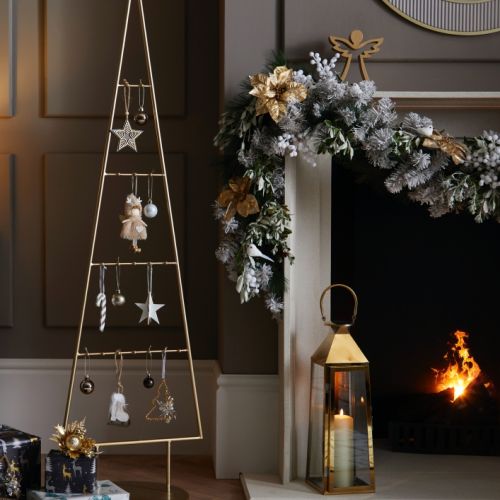 Zapleć girlandę z gałązek jodły lub świerku, ozdób szyszkami, lampkami i zawieś wokół kominka. Na górze ustaw pięknie oprawiony plakat ze świątecznym motywem, a po bokach świąteczne ozdoby – figurki, małe latarenki, papierowe choineczki... Możesz też zawiesić nad kominkiem skarpetę na podarki albo szklane bombki, w których pięknie odbijają się płomienie.