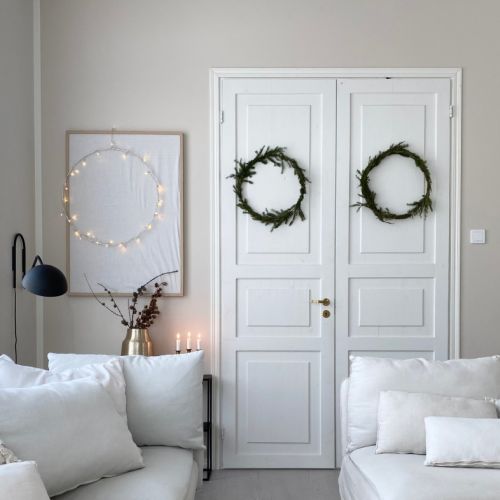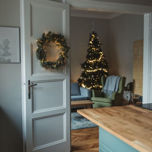 Choinkę mogą zastąpić też inne dekoracje świąteczne, na przykład ciekawie zaaranżowane wianki czy stroiki bożonarodzeniowe. Zobacz więcej inspiracji w artykule: 10 świątecznych dekoracji, które sprawdzą się, gdy nie ma miejsca na choinkę!