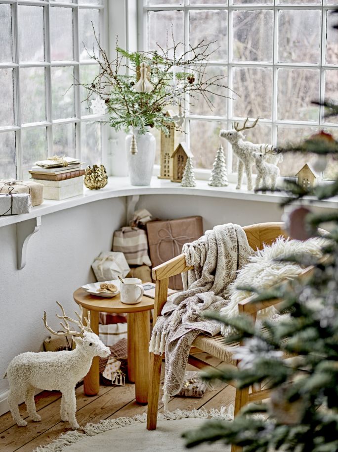 Okna to często pomijana część domu, a przecież wieczorem, gdy zapada zmrok mogą zamienić się w prawdziwe bożonarodzeniowe witryny, jeśli pięknie je wystroisz. Możesz zaaranżować w rogu salonu klimatyczny, świąteczny kącik.