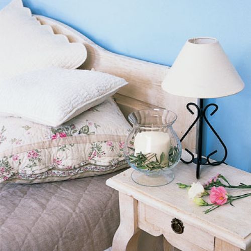 Błękitne ściany przywodzą na myśl pogodne niebo i cieple morze, poza tym dodają wnętrzu lekkości i przestrzeni. Stylizowane meble z surowego drewna zrobił na zamówienie stolarz. Wyglądało tak ładne, że aż szkoda było je malować i przecierać. Zabezpieczono tylko woskiem.