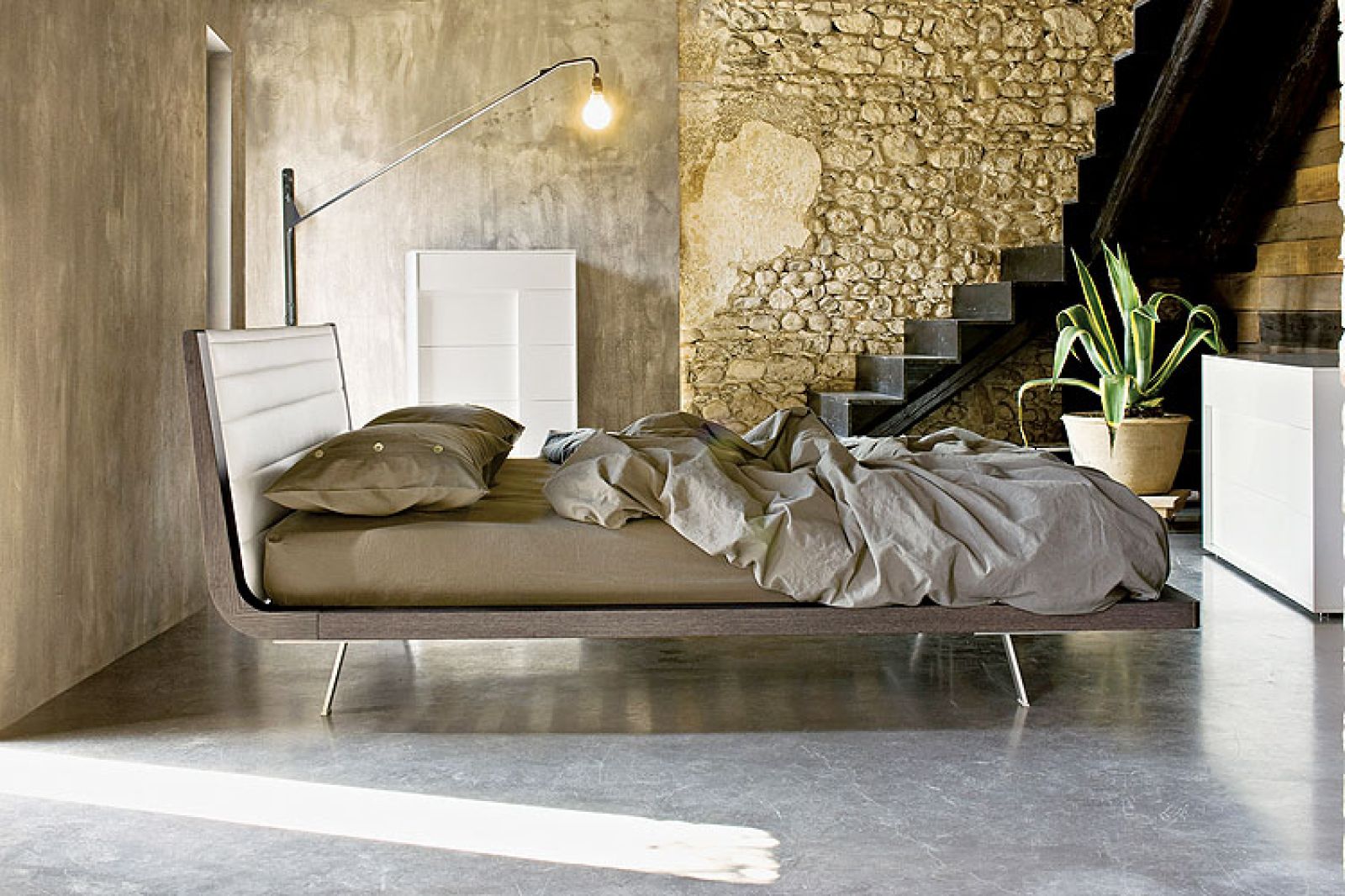 Łóżka nie stawiamy byle gdzie. Śpiąc, powinniśmy czuć się bezpiecznie, mieć „dobre plecy”: za głową ścianę, oparcie. I półki lub szafki obok, które robią wrażenie, jakby obejmowały nas ramionami.