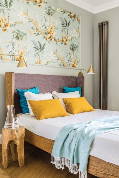 Możesz zamówić u stolarza zagłówek asymetryczny, zrobić go sam z tapicerowanych modułów (producenci proponują duży wybór kolorów i różnej wielkości moduły do samodzielnego montażu na ścianie ze złączkami i zawieszkami w komplecie) albo kupić gotowy z drewnianą podświetlaną wnęką na drobiazgi.