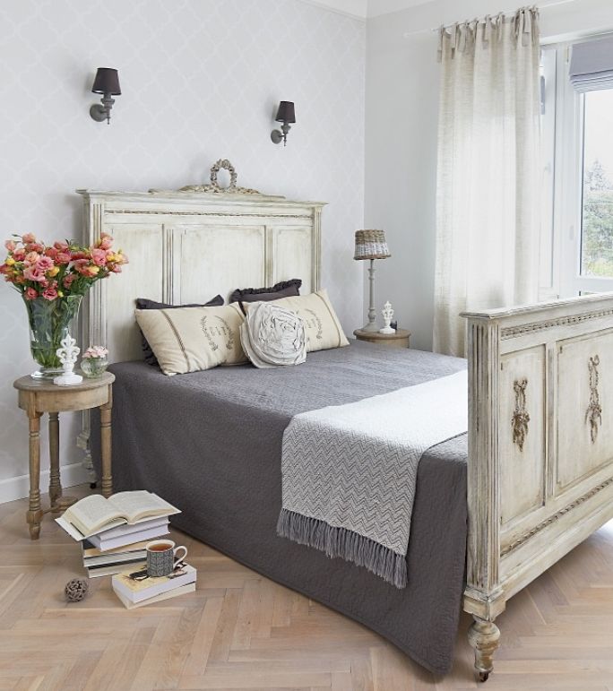 Jeżeli lubisz wnętrza prowansalskie lub marzysz o stylu shabby chic w swojej sypialni, możesz wybrać łóżko metalowe z ozdobną ramą i zdobionym zagłówkiem