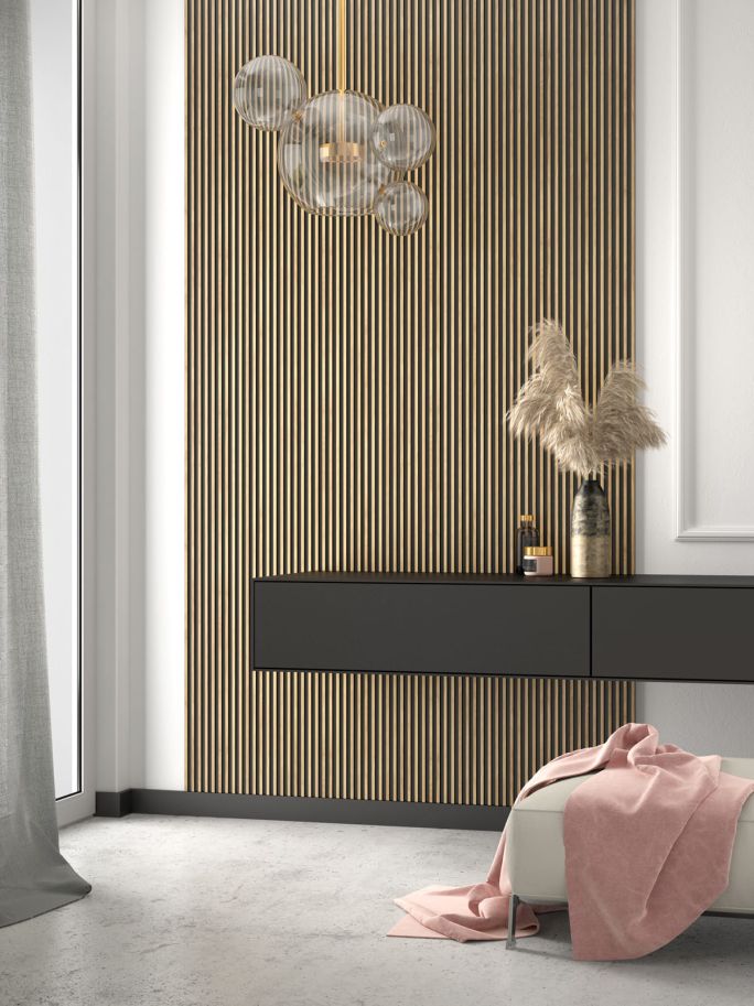 Pamiętaj, że lamele to nie tylko design, ale również element kształtujący przestrzeń. To, w jaki sposób je ułożysz może wpłynąć na proporcje pomieszczenia.