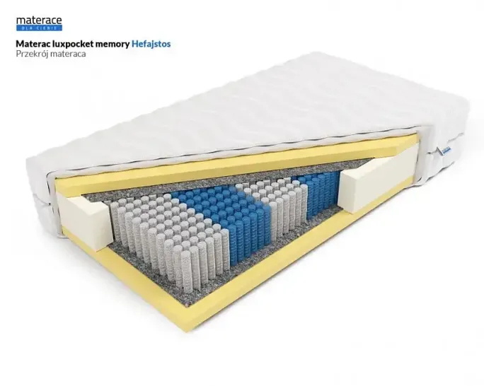 Materac Hefajstos to idealny wybór dla osób poszukujących luksusowego podparcia i maksymalnej wygody. Dzięki zastosowaniu innowacyjnej formatki LuxPocket z aż 1000 sprężynami na m² oraz 5-centymetrowej warstwy pianki PerfectSuite (VISCO/memory) po obu stronach, zapewnia wyjątkowe dopasowanie do ciała i redukcję nacisku.
