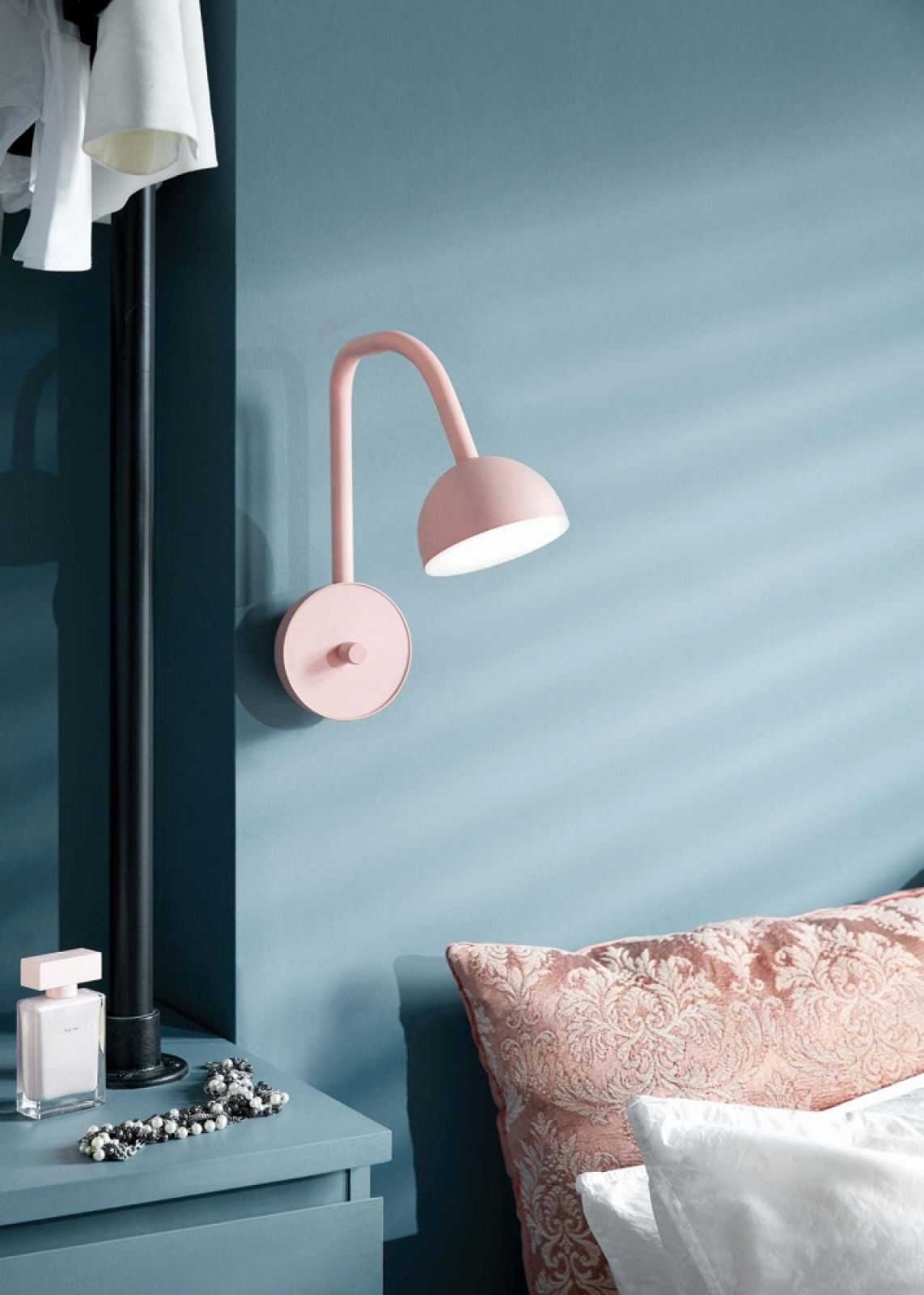 Do łóżka dobrze też dopasować lampki stylem i skontrastować je z tonacją ścian. Jeśli są ciemne, możesz zaszaleć z kolorem – na ciepłych szarościach, głębokich zieleniach, granatach i brązach pięknie odetną się pastelowe klosiki w energetycznych odcieniach. Będą przykuwającym oko akcentem i dodadzą wnętrzu nowoczesnego pazurka.