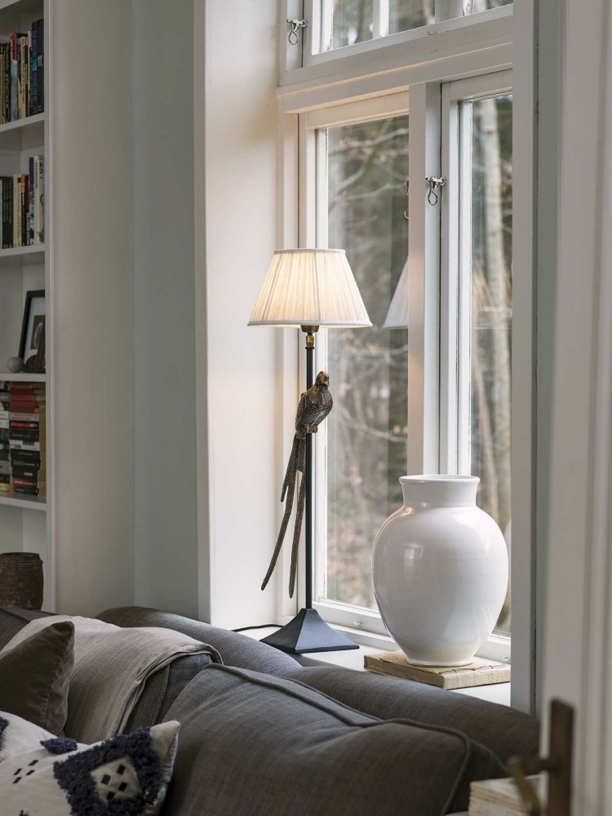 Lampa stojąca, oprócz funkcji dekoracyjnej, może optycznie kształtować przestrzeń. W zależności od tego, czy światło skierujesz w górę, czy w dół, możesz sprawić, że wnętrze wyda się wyższe lub bardziej kameralne, przytulniejsze.