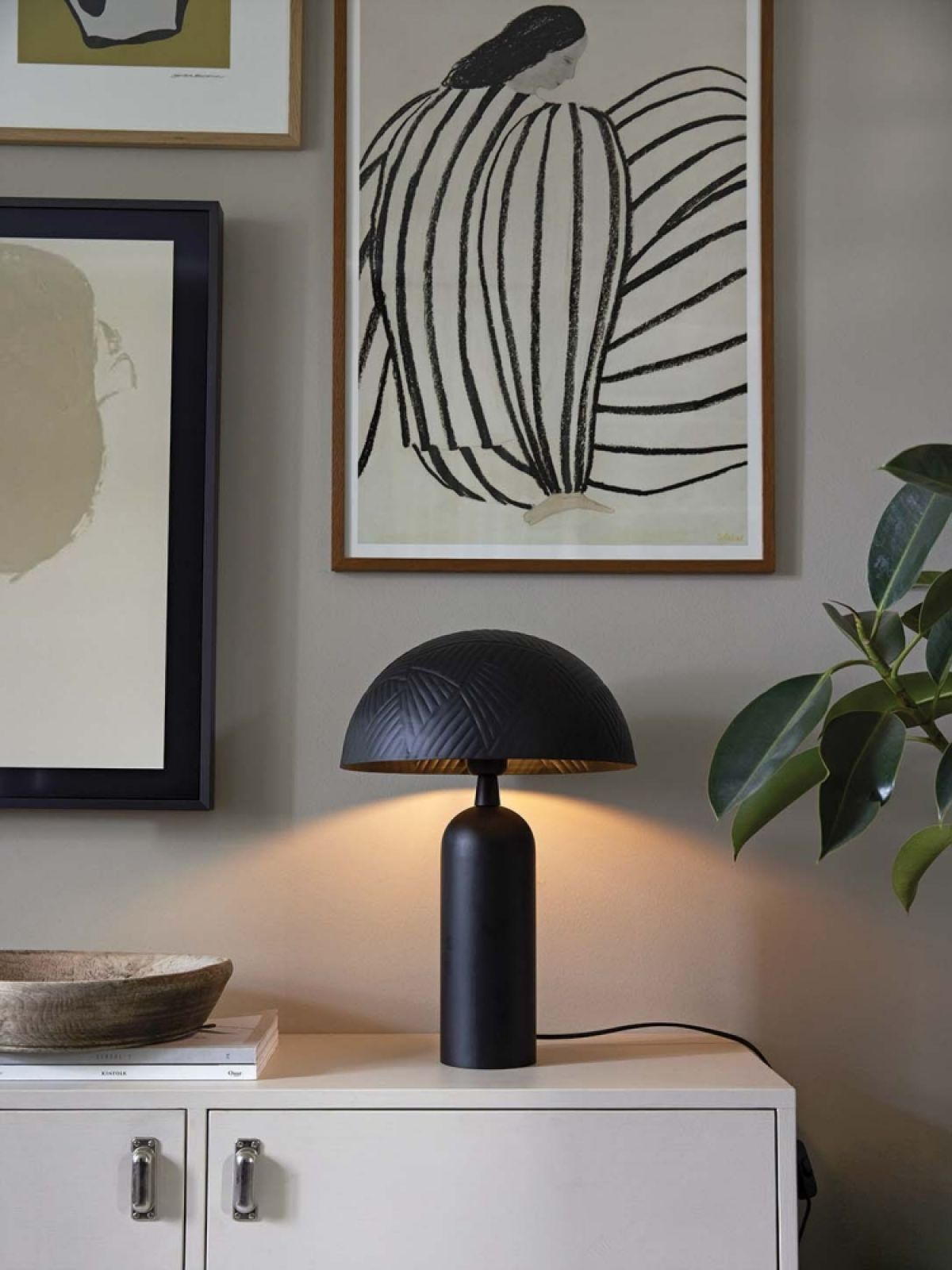 Komoda to znakomite miejsce na lampki stołowe. Małe stojące grzybki, większe klasyczne stołowe z tradycyjnymi abażurami z tkanin, ale też formy biurkowe z regulowanym ramieniem, które można obracać, kierując światło w górę lub w dół. Stojąca na komodzie lampa wyeksponuje też efektowną strukturę ściany albo przeciwnie – pomoże zakamuflować jej mankamenty.