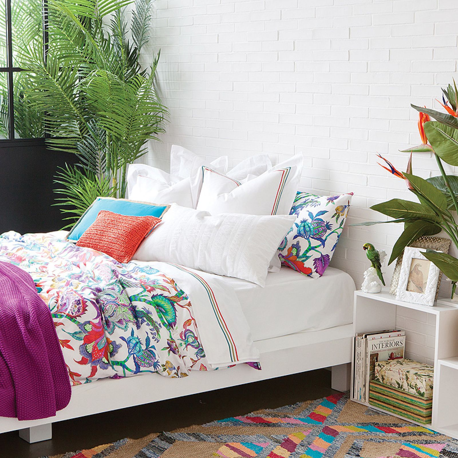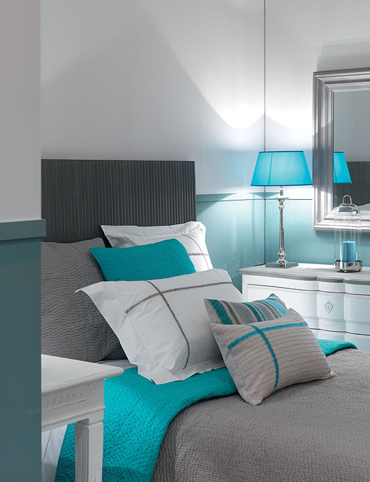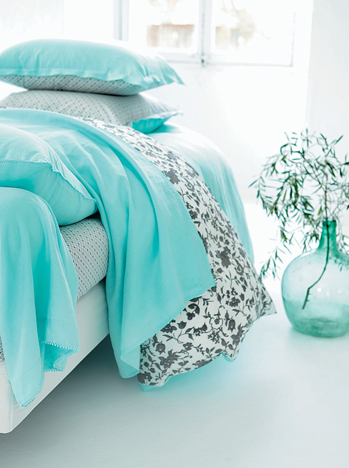 Program dla początkujących: zmień ścianę i pościel. Wersja nie dość, że ekspresowa, to jeszcze ekonomiczna. Żeg-namy białe powłoczki, witamy nowe, w nasyconych kolorach. Do nich dobieramy odcień farby na ścianę. Przykładem aranżacja firmy Caparol.