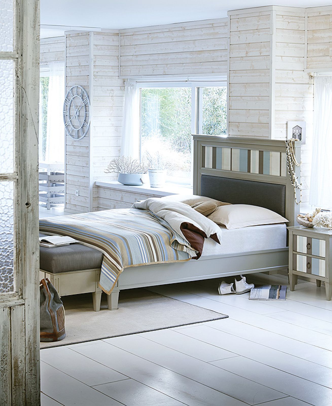 W aranżacji firmy Kurort Home leitmotivem są kwiaty i gałęzie, wprowadzające do wnętrza ogrodową atmosferę. Inny przykład to pasy w sypialni Grange, które pokrywają szafki, wezgłowie łóżka i fronty stolików nocnych. Trzymają całość w ryzach.