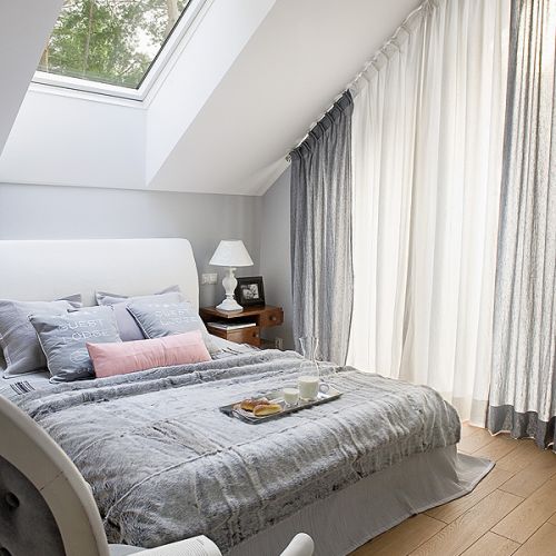 W sypialni w stylu skandynawskim raczej unika się ciemnych zasłon i firan, a parapety pozostają zazwyczaj dyskretnie ozdobione np. wazonem, doniczkami czy świecami zapachowymi. Stojące bibeloty mogą przecież utrudniać przepływ promieni słonecznych. Wybierając oświetlenie do sypialni w stylu skandynawskim możesz zastosować proste oprawy do górnej lampy i kinkietów lub lampek nocnych. Dodatkową lampę podłogową postaw przy fotelu, tworząc w ten sposób wygodny i przytulny kącik do odpoczynku.