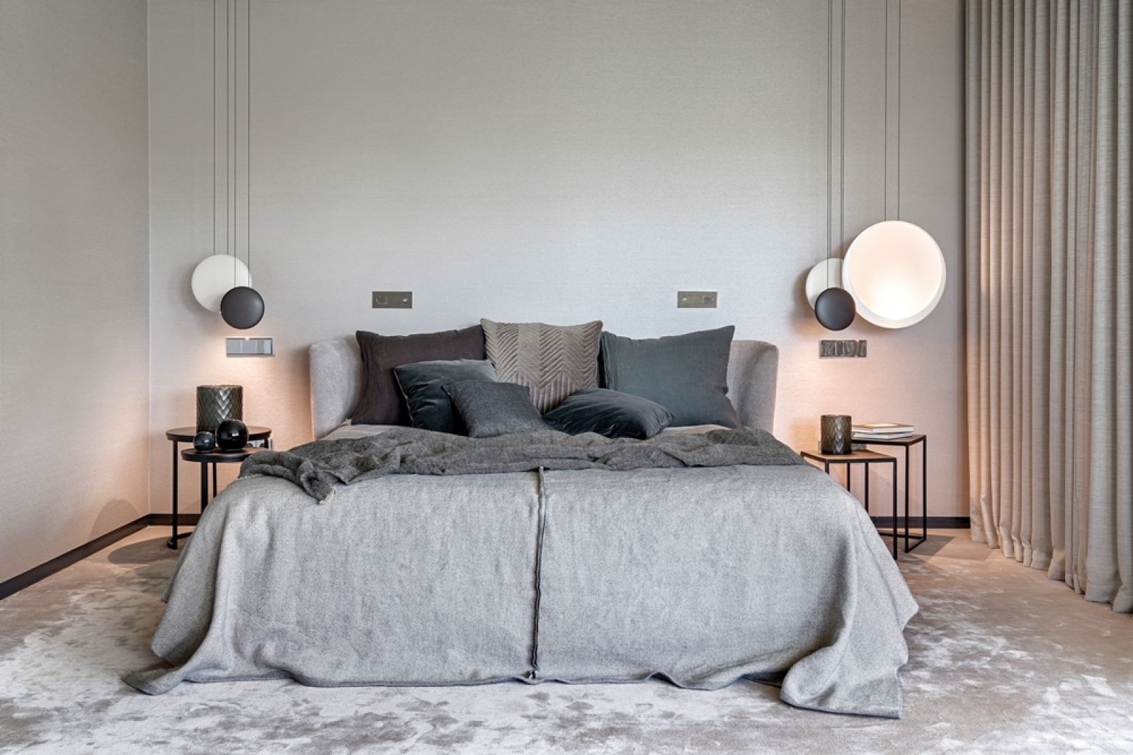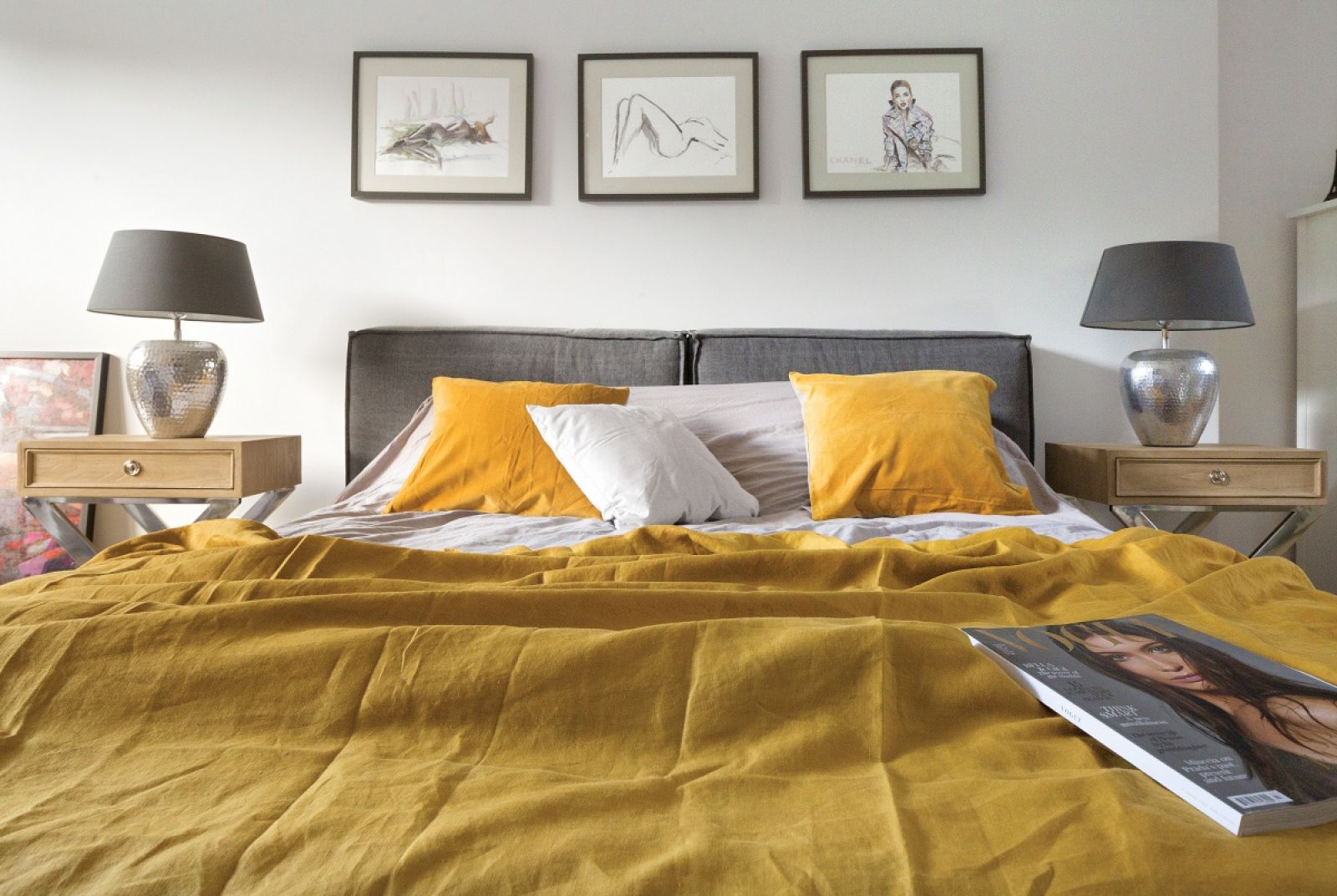 Jeśli w aranżacji sypialni pojawia się szarość, muszą towarzyszyć jej czerń lub biel. Bez nich efekt będzie mdły. Wystarczą nawet niewielkie białe kontrasty lub elementy czerni, by zachować harmonię.