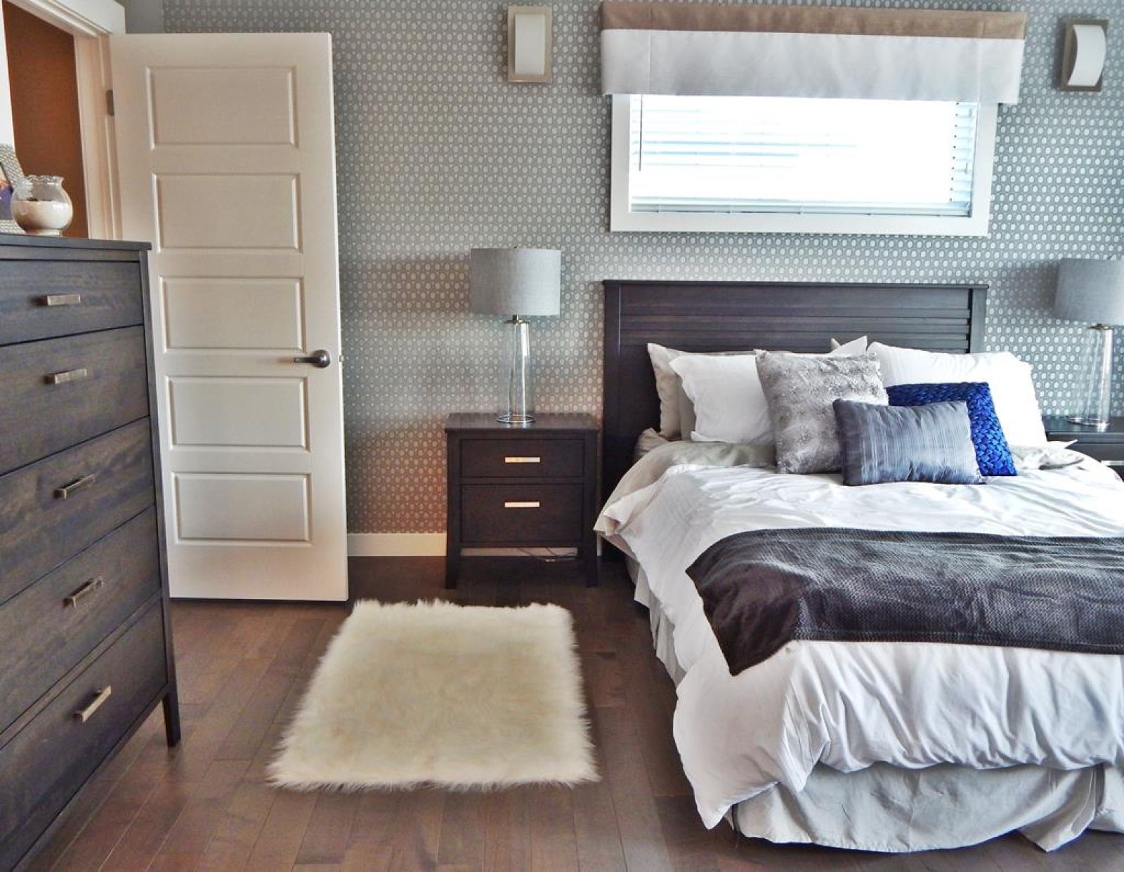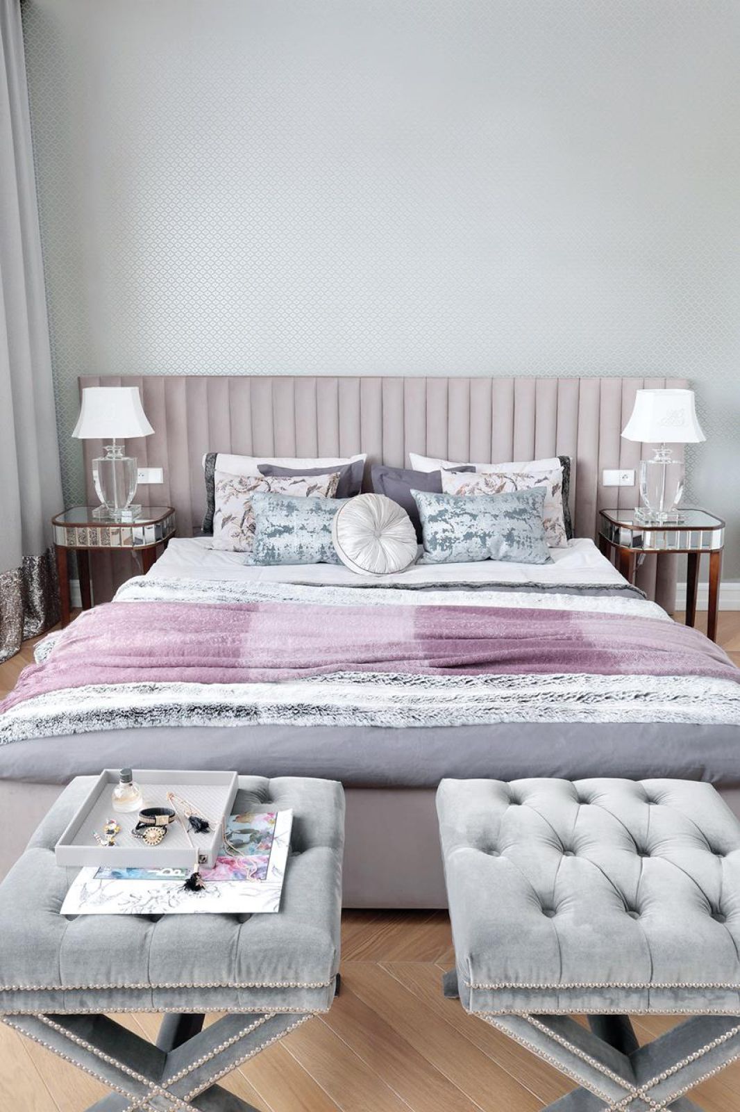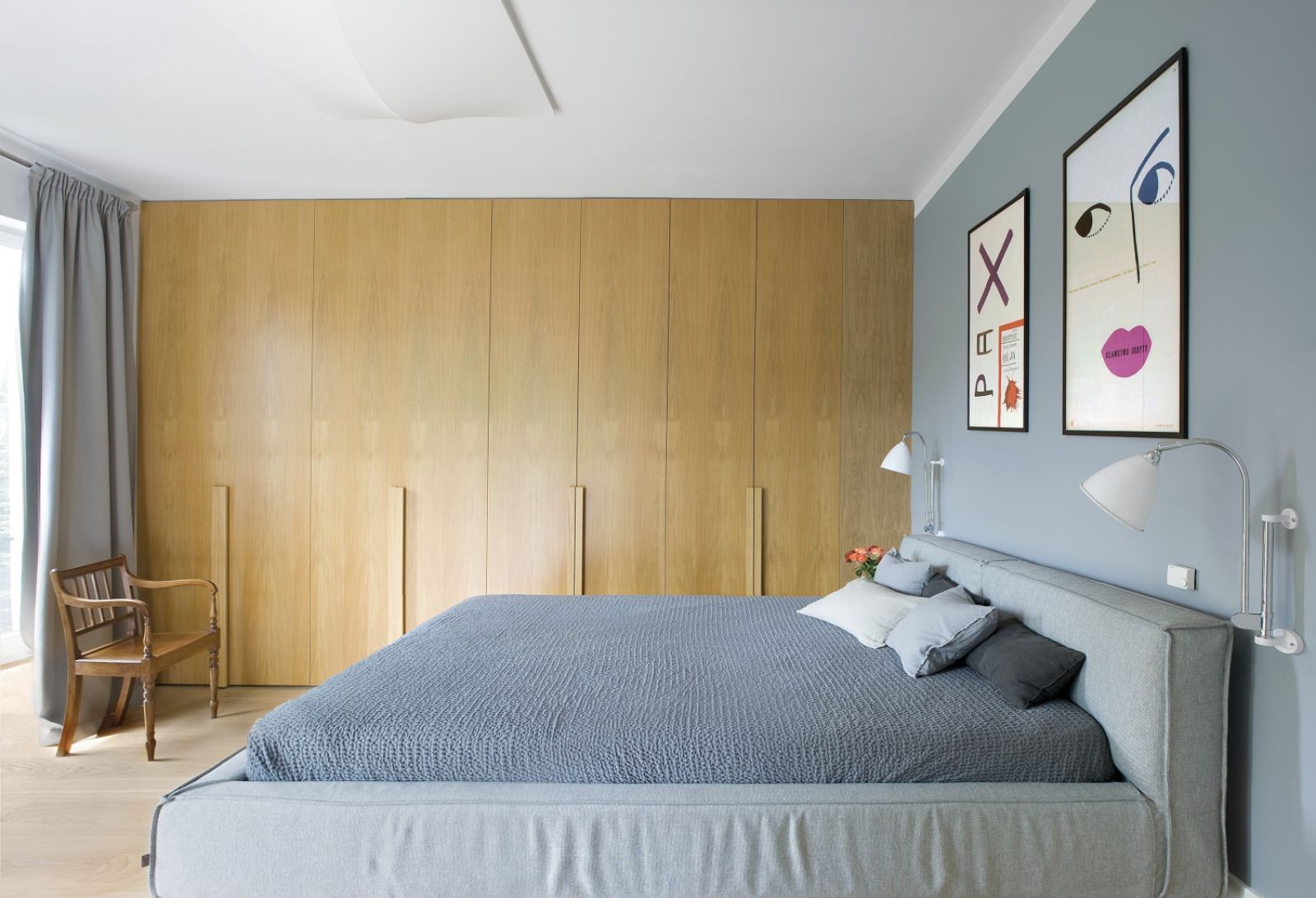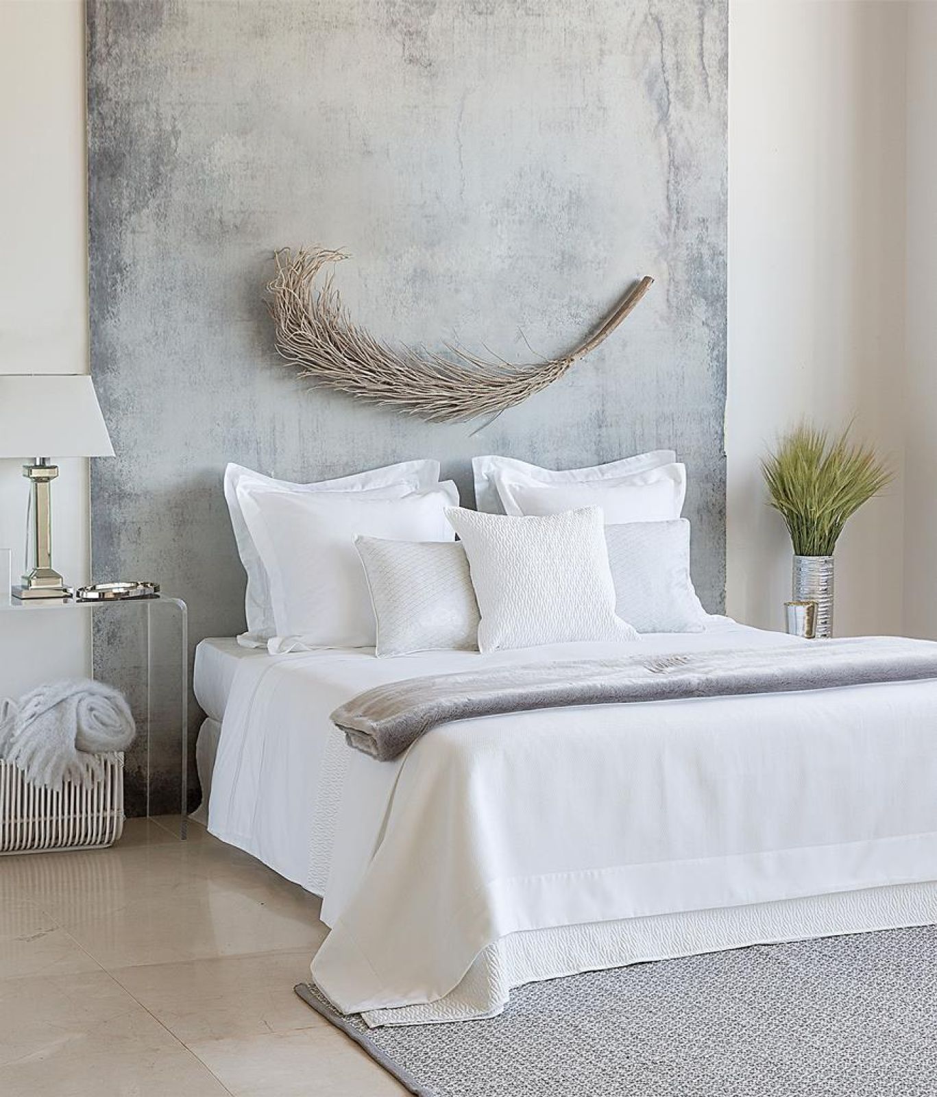 Przy szarej sypialni warto zdecydować się na białe meble. Kontrastowe wyposażenie w stosunku do koloru ścian zaprowadzi ład i przejrzystość w sypialni. Pamiętajmy także, że główna uroda łóżka leży w pościeli i rodzaju zagłówka, nie w samej ramie.