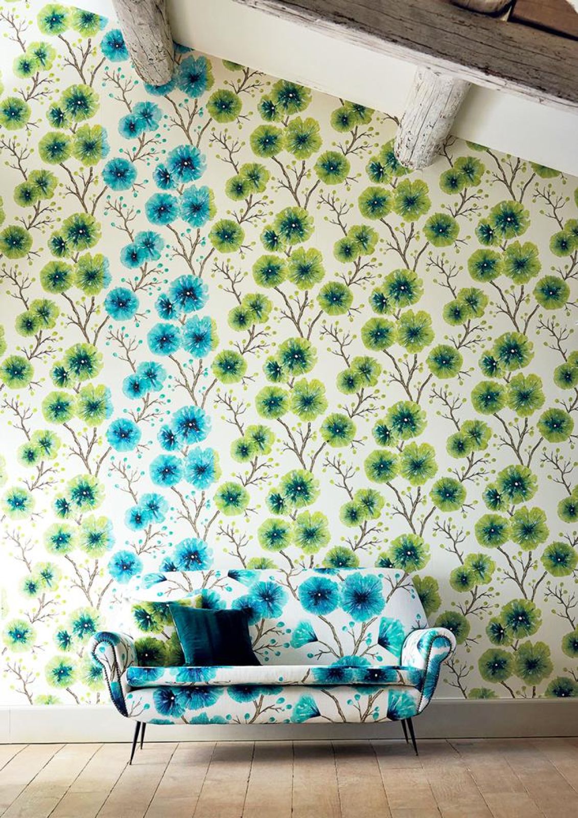 Ciekawy patent dla tradycjonalistek to kwiecista tapeta ujęta w ramy sztukaterii. Trochę jak z rokokowego buduaru, ale przykład aranżacji Designers Guild pokazuje, że sprawdzi się też w salonie.