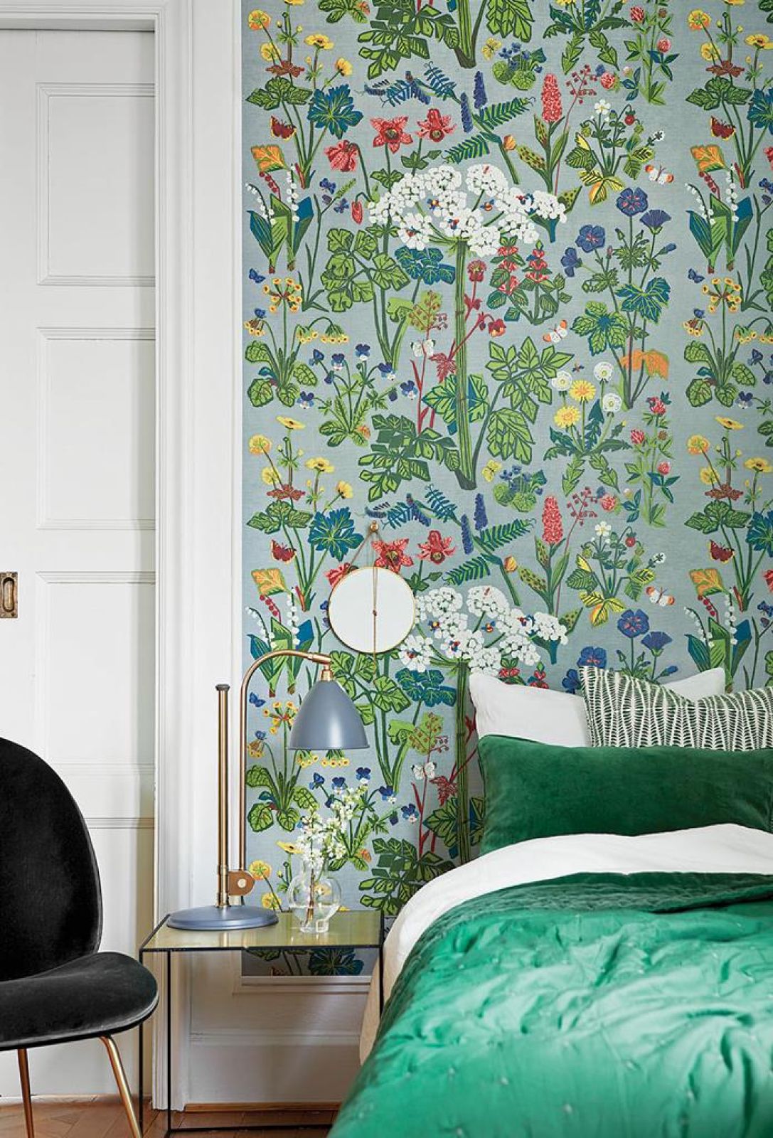 Do wnętrz w stylu skandynawskim bardziej pasują tapety z motywem dziko rosnących kwiatów, ziół i motyli, do klasycznych – róże ze starych francuskich wzorników (patrz Boråstapeter).