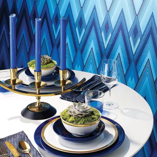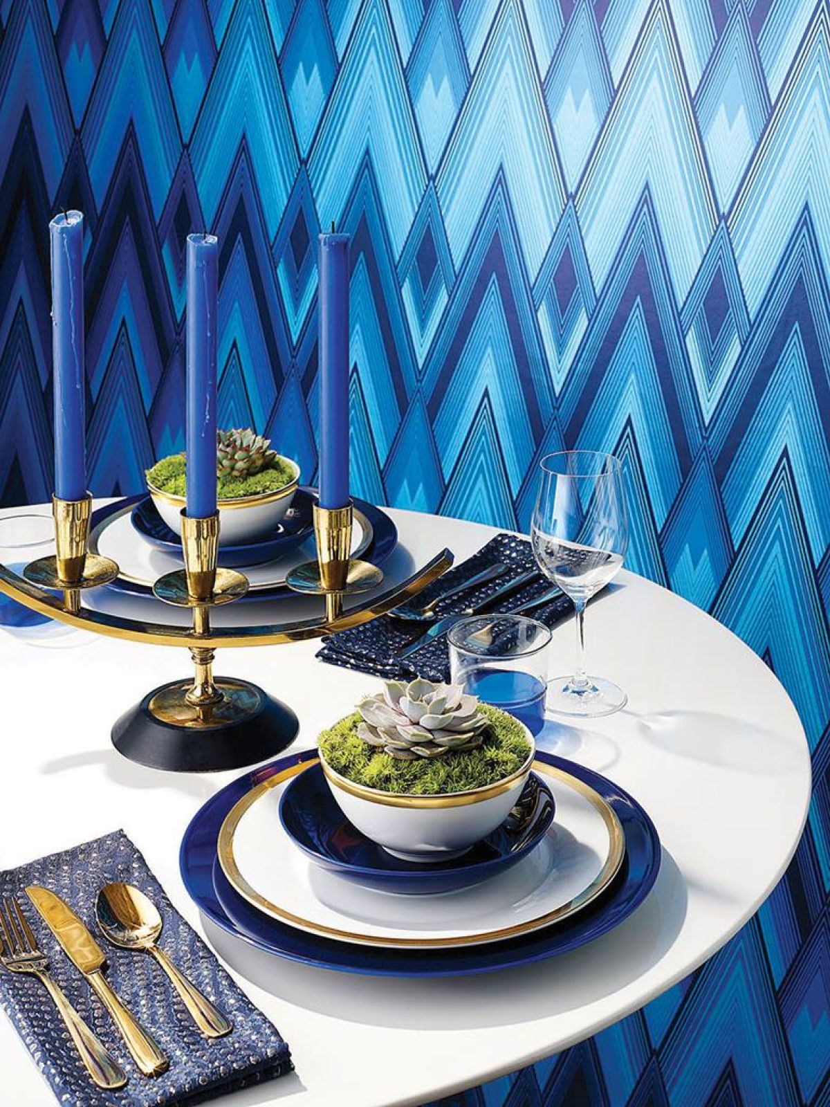 Taki jest też nowy silny trend – geometria w stylu retro. Od złamanych kolorów, jak z palety kubistów, po żywe kobalty, szafiry i szmaragdy. Czasem wystarczy jedna ściana z taką tapetą, a dom zaczyna żyć innym życiem.