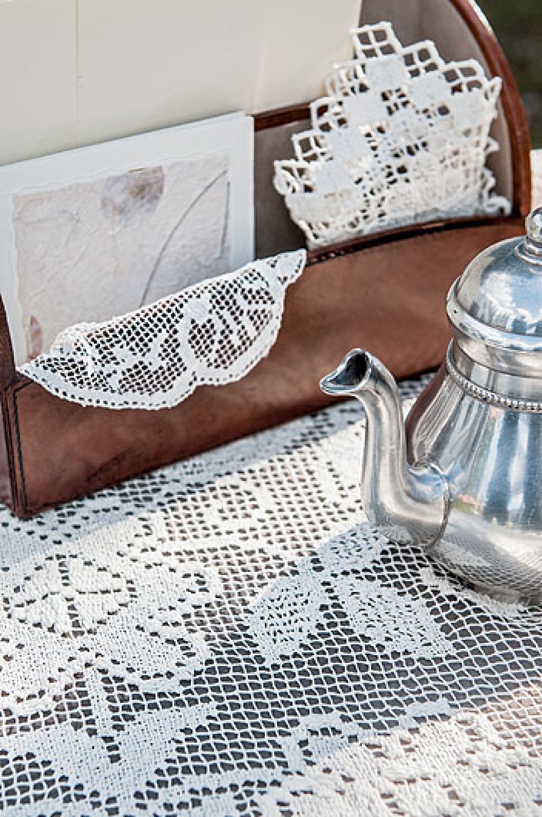 Ptaszki kaszubskie z plamiastymi ogonami, lilie, powoje, róże orientalne, pędy winorośli (oryginalne na bieliźnie kościelnej sprzed kilkuset lat), wieńce laurowe (motyw odrysowany na podstawie kawałeczka, który pani Teresa wypatrzyła w Portofino nad Morzem Tyrreńskim) – wszystkie te wzory odtworzyła ze starych koronek lub zaprojektowała sama.