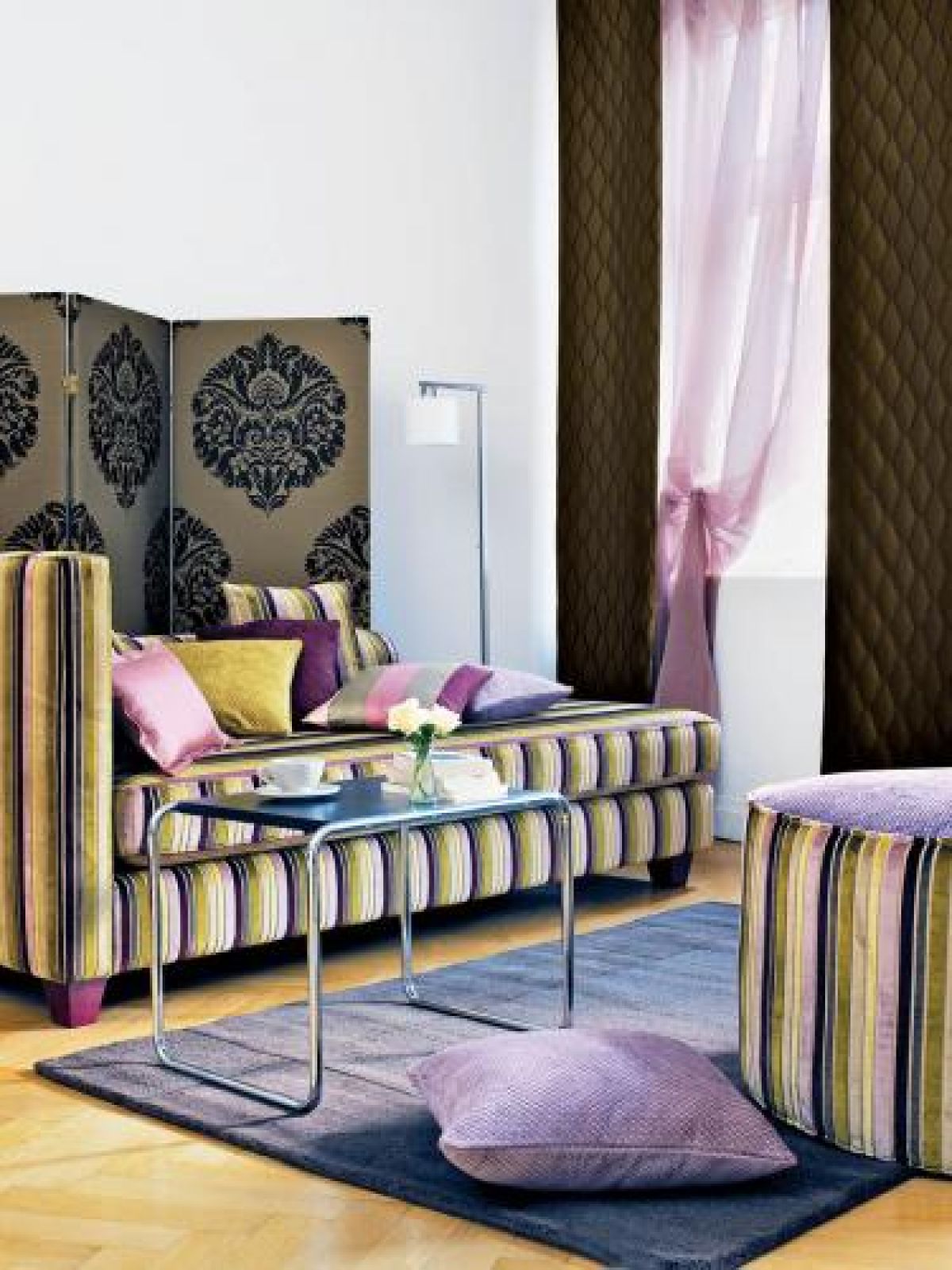 U Christiana Fischbachera nawet najbardziej nieoczekiwane połączenia wyglądają świetnie. Kanapa obita materiałem w odjazdowe, barwne paski, a obok parawan w bordowe róże lub podnóżek w kratę.