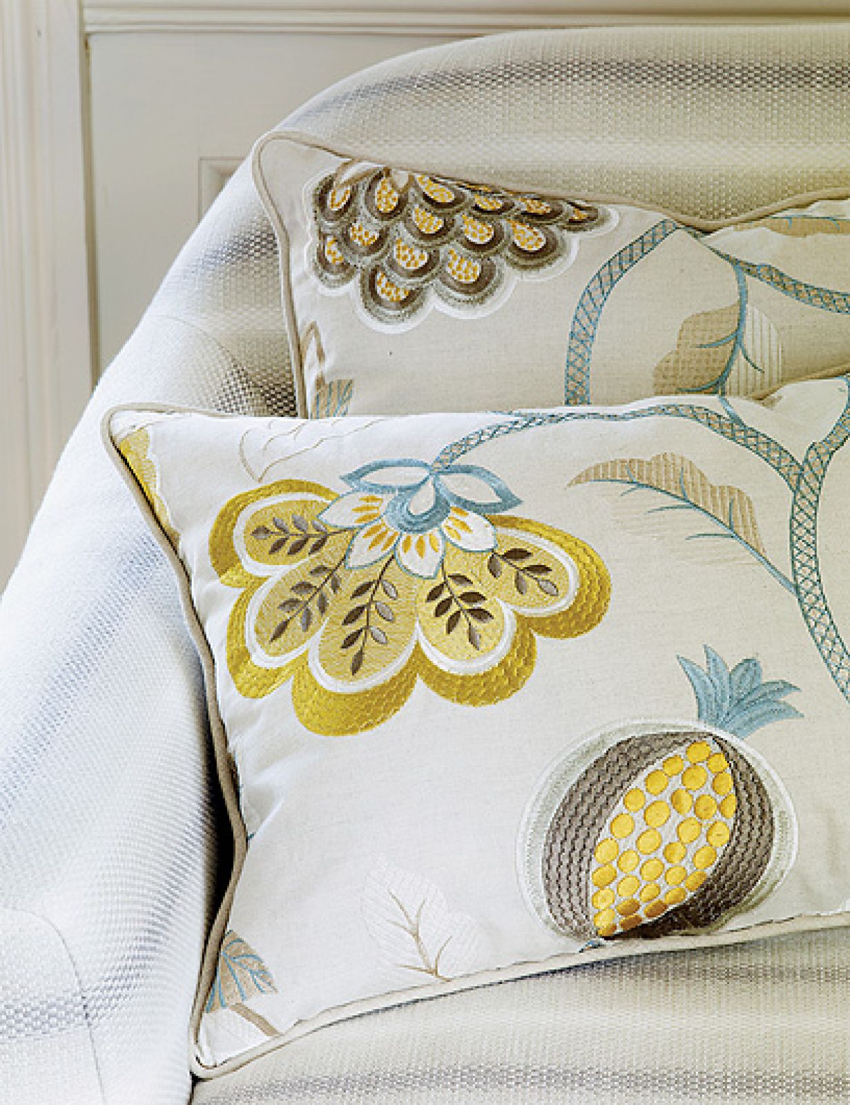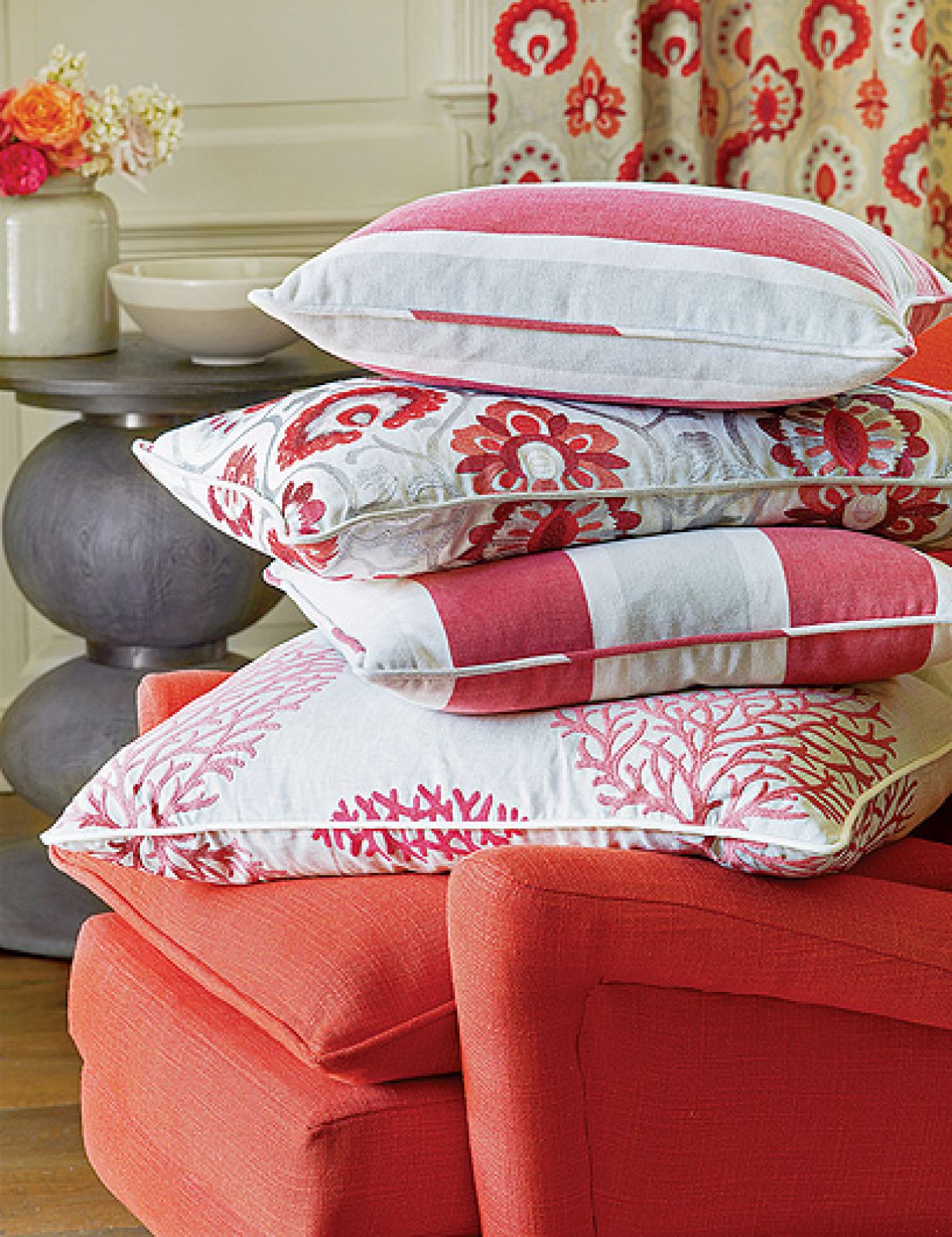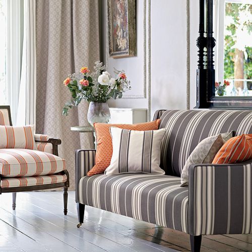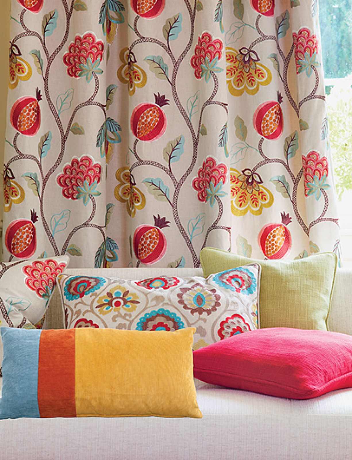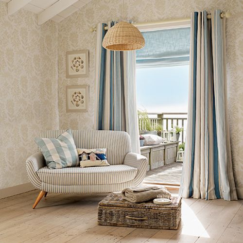 Albo pójdźmy w drugą stronę, we wnętrza bardziej kobiece i romantyczne. Miłośnicy pasteli połączonych z bielą i beżem odnajdą się wśród tkanin Laury Ashley. W tym sezonie również nie zabraknie tu kwiatów na jasnym tle, często zestawionych z dwukolorową kratką czy paskami. Identyczne desenie na zasłonach, materiałach obiciowych, tapetach, poduszkach; w tych samych lub idealnie pasujących do siebie kolorach. Motywy roślinne znajdziemy też u Jane Churchill, która w kolekcji Paradise Garden daje szansę barwom bardziej intensywnym – jakby na przekór temu, co widać za oknem.