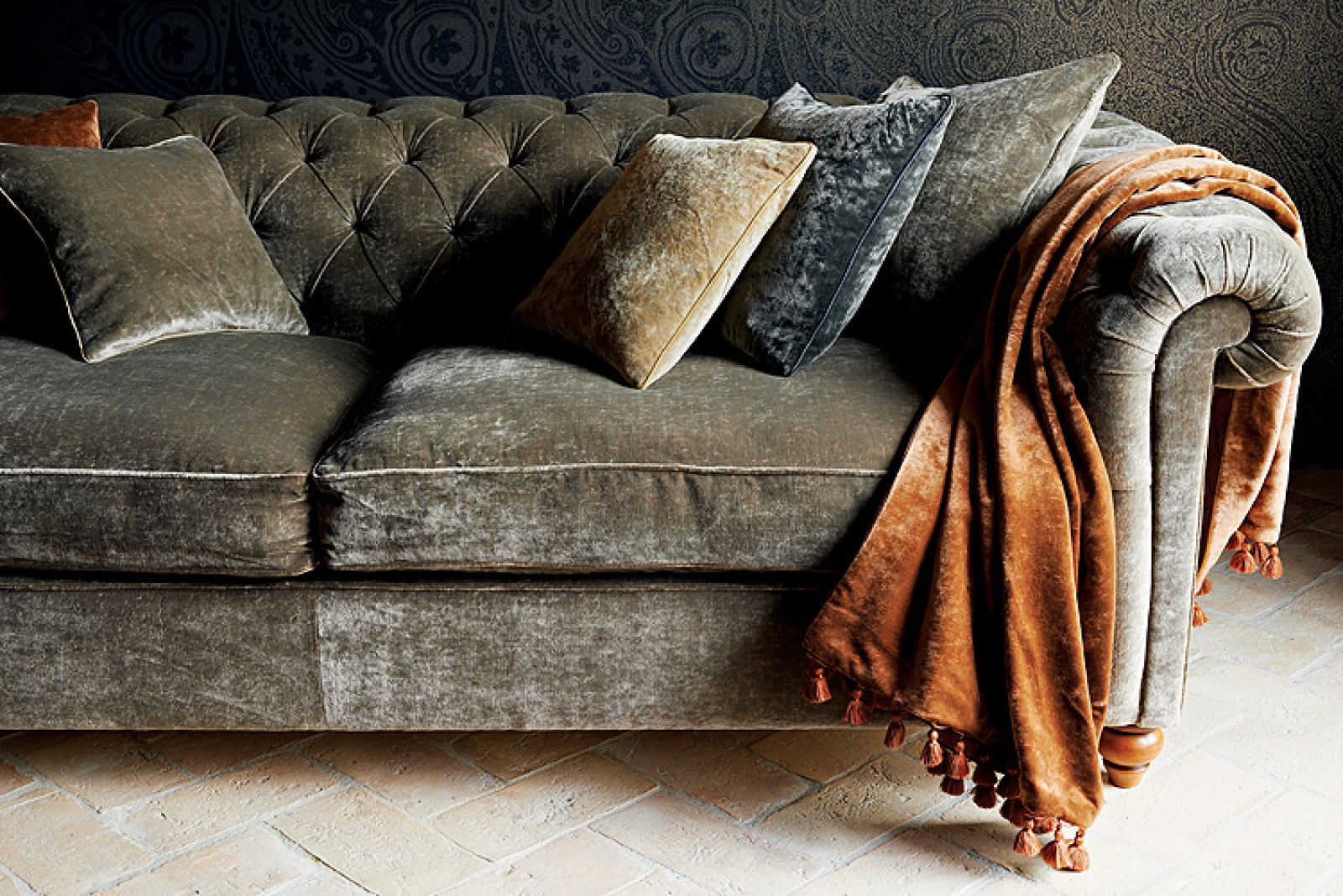 A co, jeśli wzory całkiem nam się przejadły? Zerknijmy na kolekcję Loriano marki Romo, która odświeżyła popularną serię gniecionego welwetu Palazzo. Tu mamy do wyboru kilkadziesiąt matowych i kilkanaście metalicznych odcieni. Gładkie, jednokolorowe tkaniny są też w kolekcji Atmosphere Velvets Jane Churchill oraz Curzon Velvet od Zoffany, choć tu, inaczej niż w Loriano, konkurują z tkaninami wzorzystymi.
