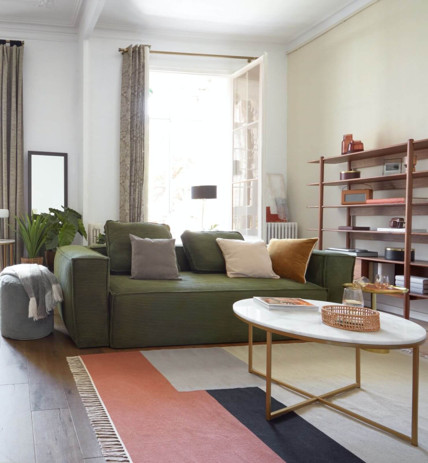 We wnętrzach trwa modna na lata 70. i 80. XX w. Nic dziwnego, że swój wielki powrót świętuje też bardzo popularny w tym czasie prążkowany materiał, czyli sztruks. Dzisiaj ta miękka tkanina jest silnym trendem w aranżacji wnętrz. Zdobi sofy, krzesła, poduszki oraz dodatki do domu. Warto dodać, że sztruks jest łatwy do czyszczenia – pokrowce możesz w większości przypadków uprać w pralce.