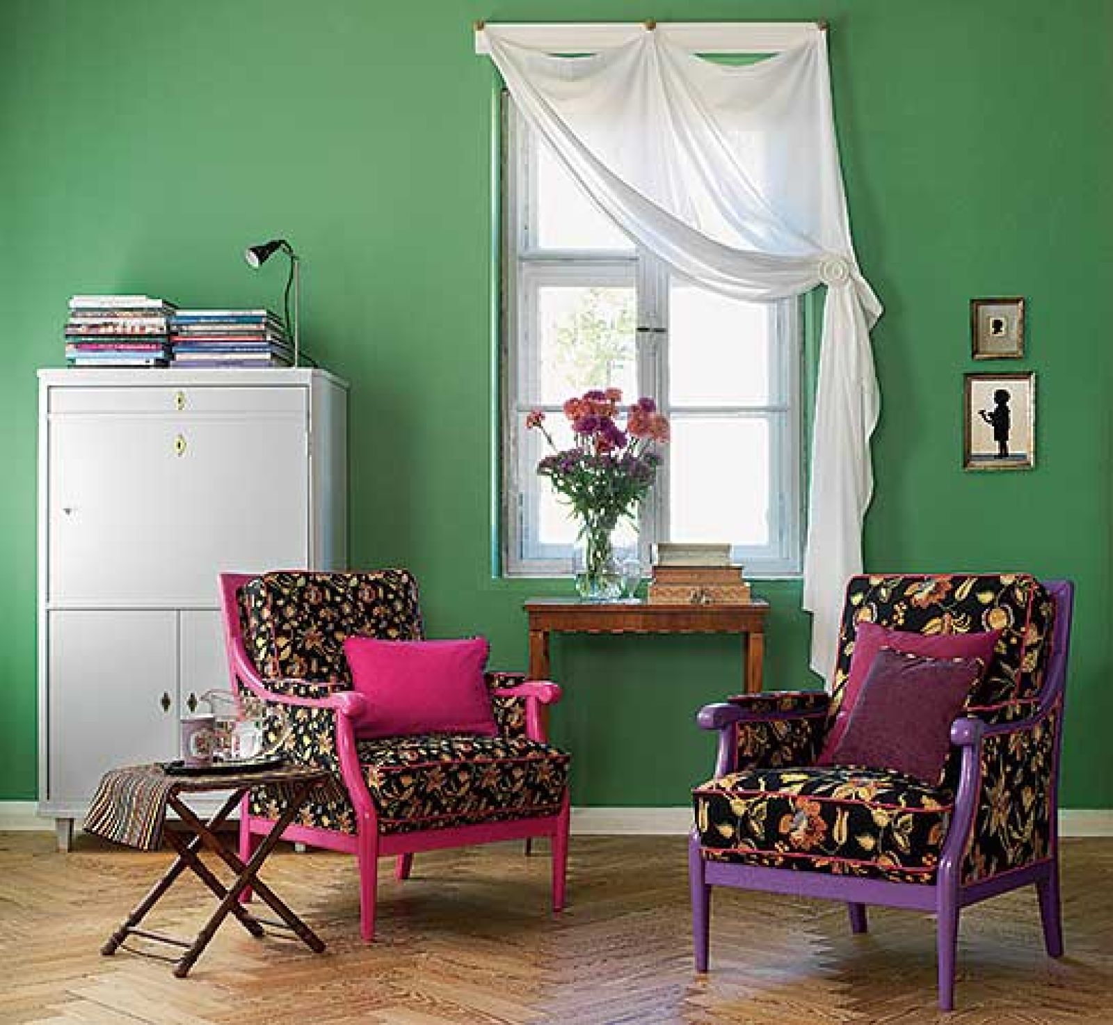 W kąt idą ciepłe tweedy, aksamity czy sztruks, wybieram coś lżejszego – bawełny, satyny, perkale i len. Wszystko kolorowe. Pomysłów jest tyle, ile podpowie wyobraźnia, bo wiosna sprzyja eksperymentowaniu i zabawie. Kolory mogą zdziałać cuda, ale nie powinno być ich więcej niż trzy w jednym pomieszczeniu. Jasne sprawią, że wyda się większe, a ciemne je pomniejszą. Podobne złudzenie dają tkaniny wzorzyste. Choć zabawa nimi to duża frajda, potrzeba wyczucia, żeby w domu nie zapanował chaos.