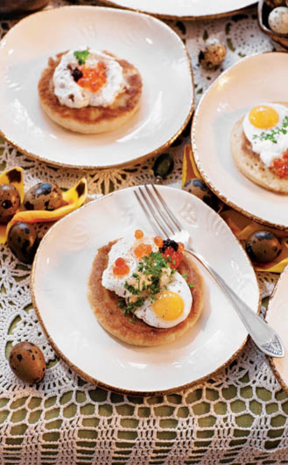 Bliny z kawiorem i przepiórczymi jajami