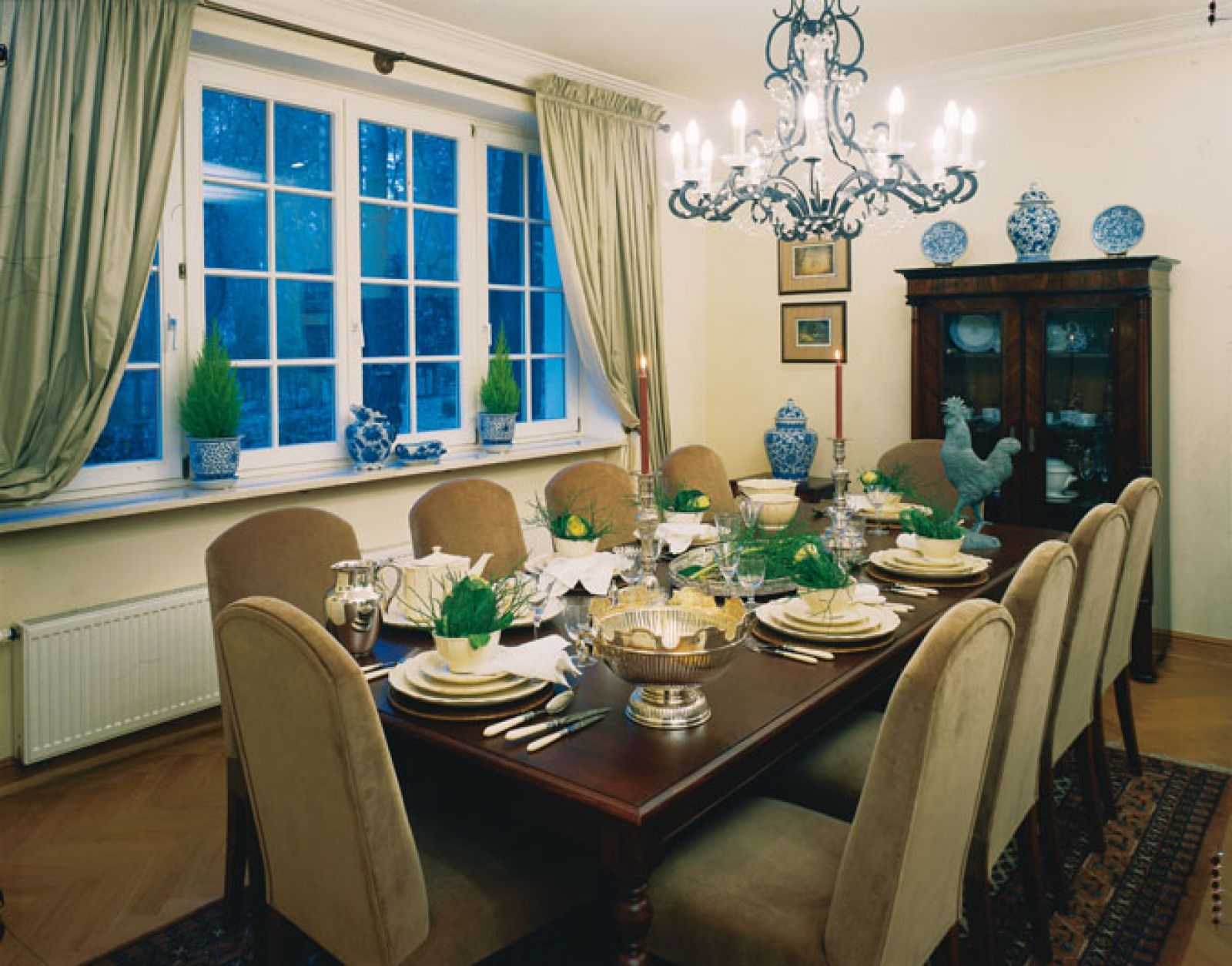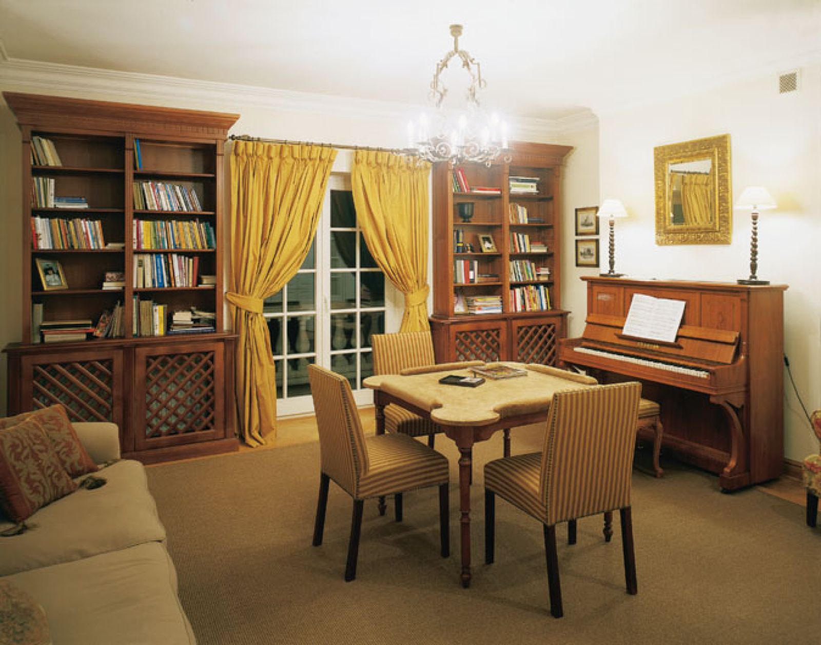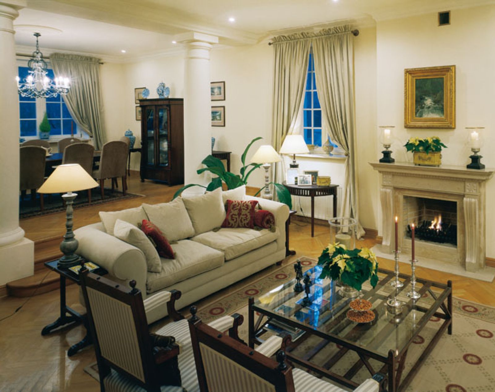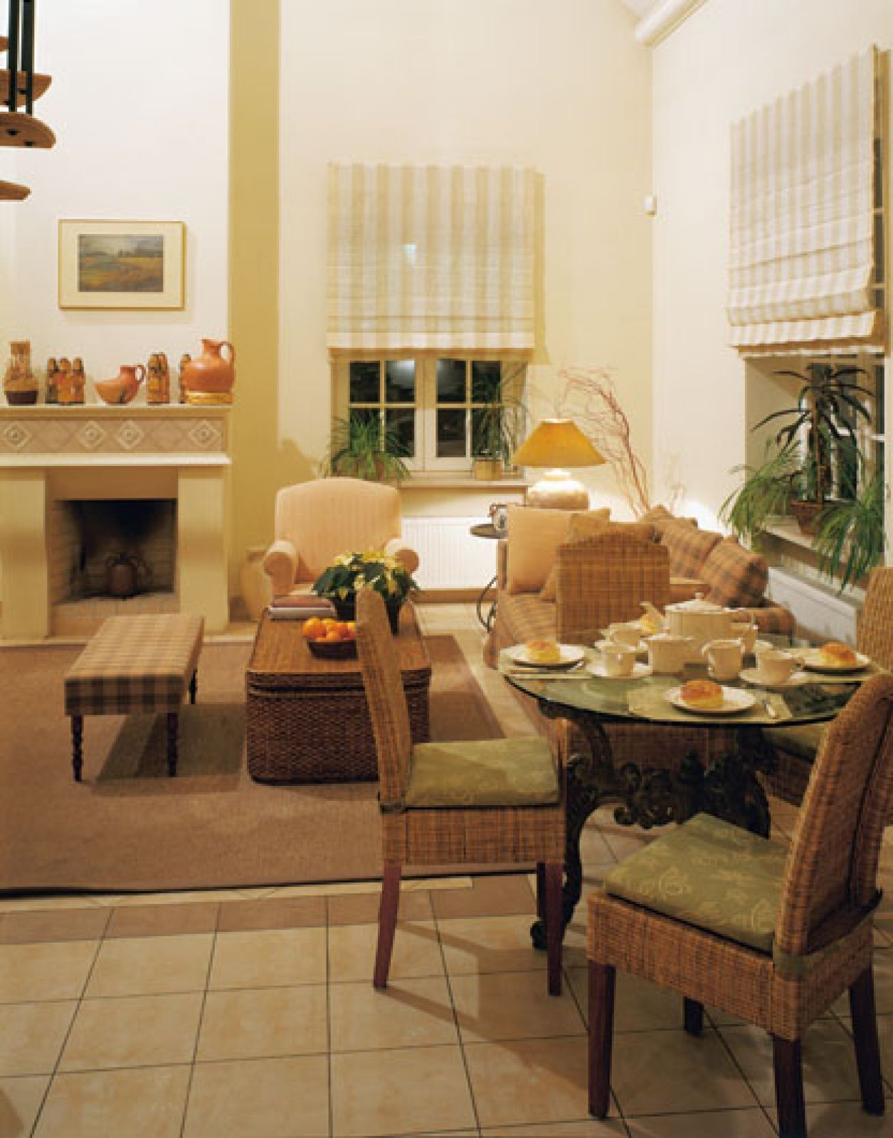 Urządzenie wnętrza sprawiało sporo kłopotów, które skończyły się w momencie, kiedy pani Katarzyna odkryła sklep „Plac Vendome”. Efektem niezawodnego smaku i zbliżonych gustów właścicielki, pani Jolanty Barazzoli i jej nowych klientów jest wystrój konstancińskiej willi. Utrzymany w tradycyjnym stylu, wypełniony atmosferą przytulności i ciepła. Gospodarze nie upierali się przy oryginalnych meblach z epoki, dlatego większość z nich to kopie. Nie lękają się także zarzutu eklektyzmu. Ważne, aby wnętrze sprawiało wrażenie określonego ładu i harmonii.